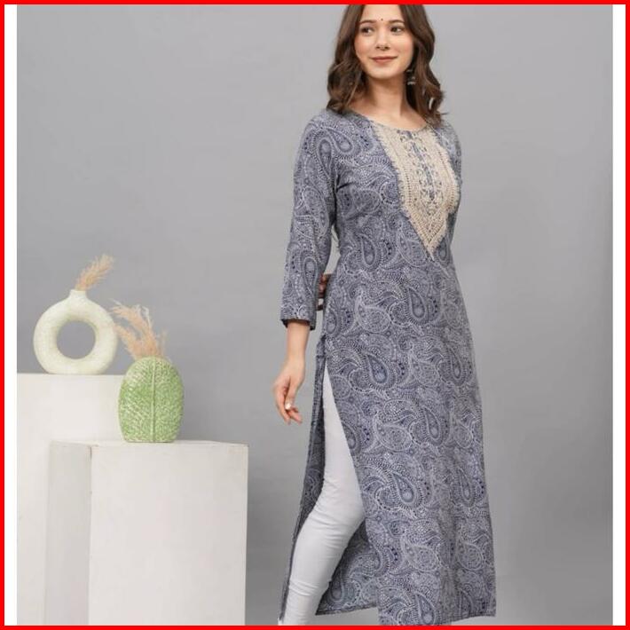 Laqueens Kurti Kurta Baju India Dewasa Remaja Bordir Motif Print Ethnic Biru Navy Dress Tunik Kondangan Mewah Katun Atas
