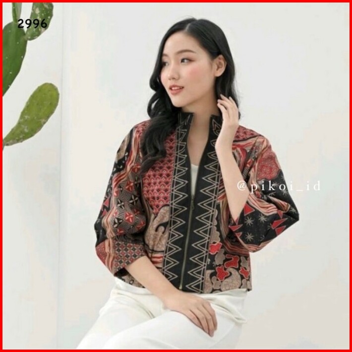 Bolero Batik Wanita Modern Atasan Bomber Jaket Batik Lengan Panjang