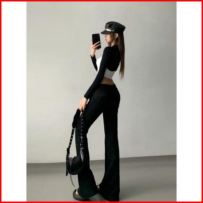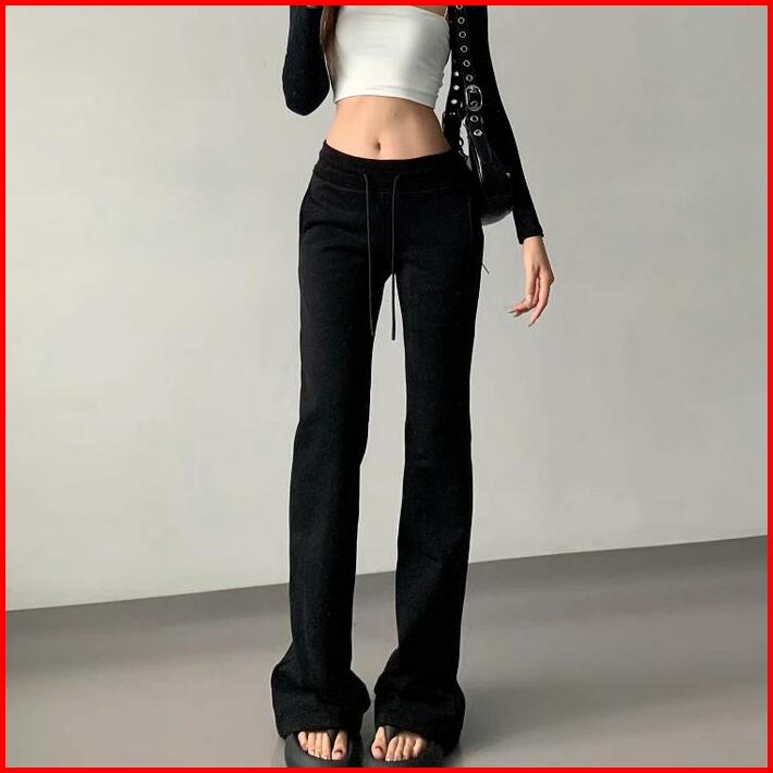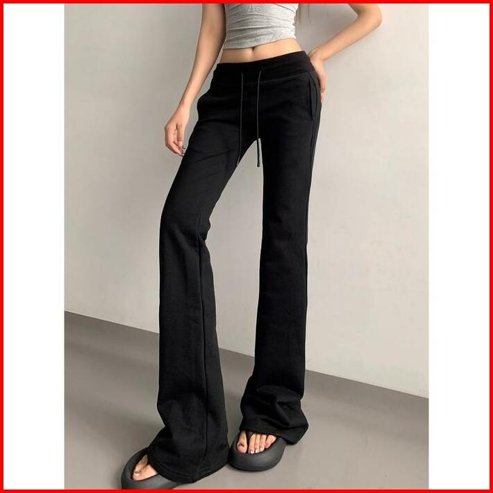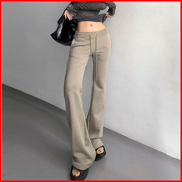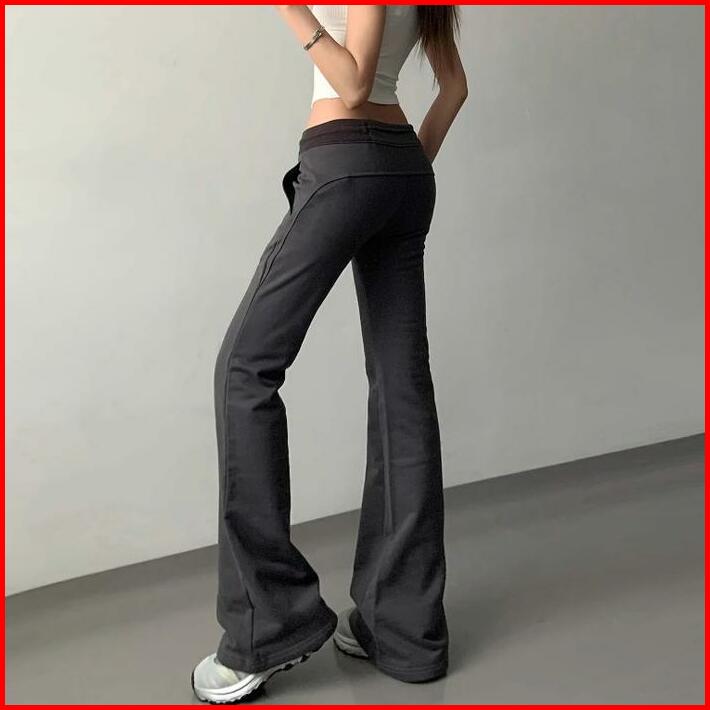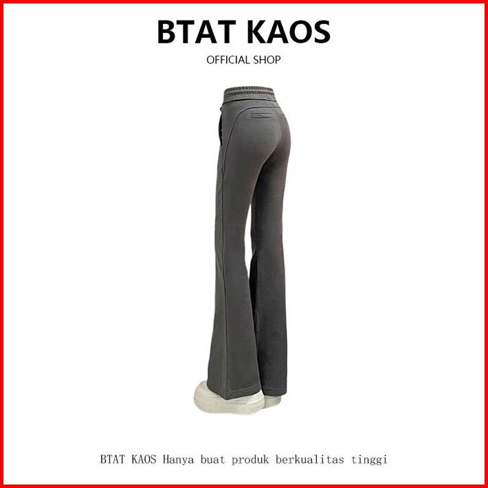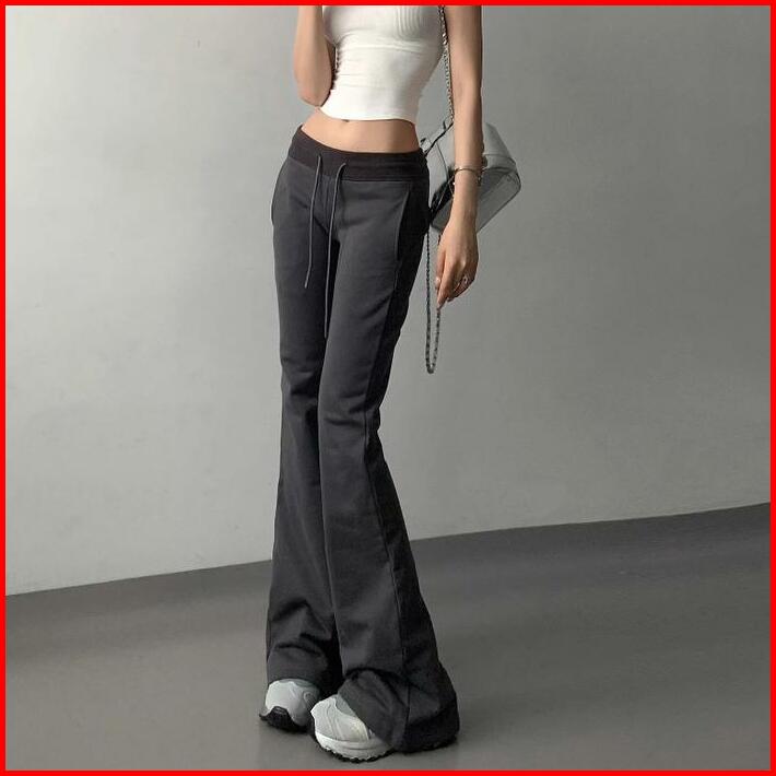Cutbray Low Waist Berwarna Abu-abu Celana Kerja Wanita Pinggang Karet Celana Olahraga Celana Yoga