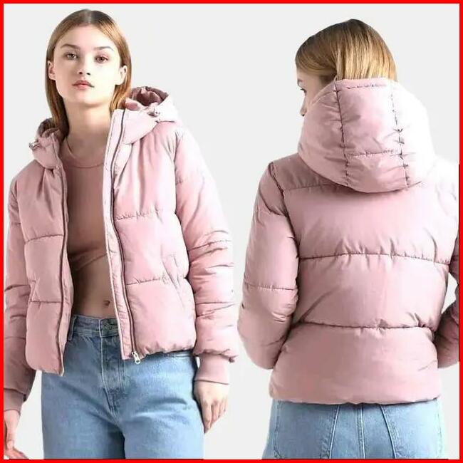Jaket Puffer Wanita Musim Dingin Unisex Mantel Tebal Waterproof Nyaman Outdoor Casual Outer Cream Zipper Pink