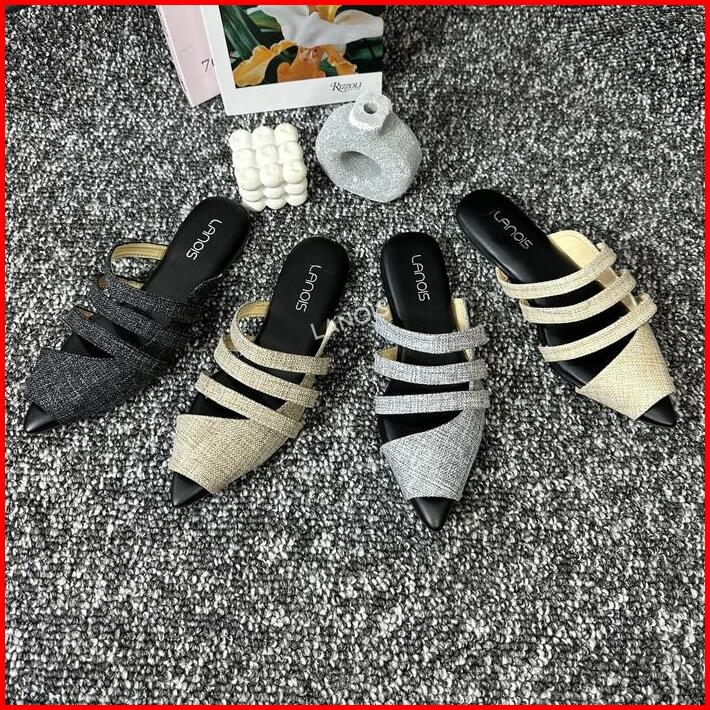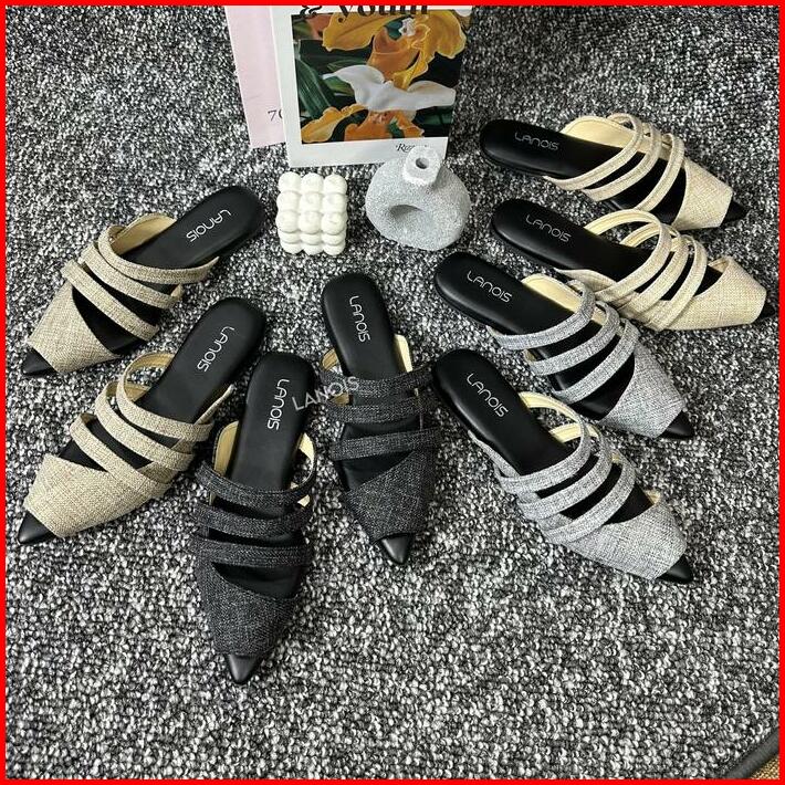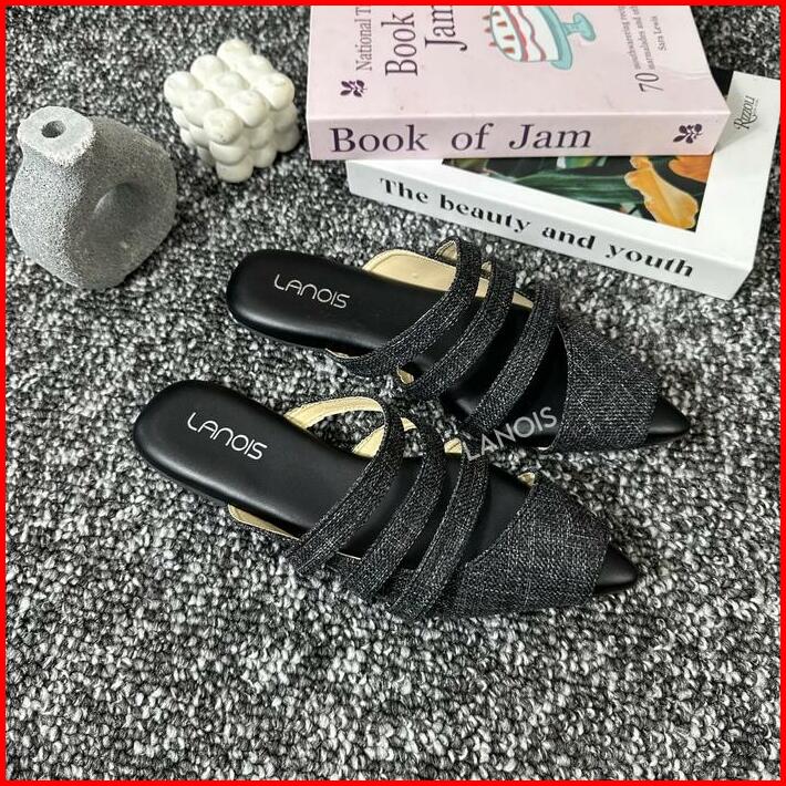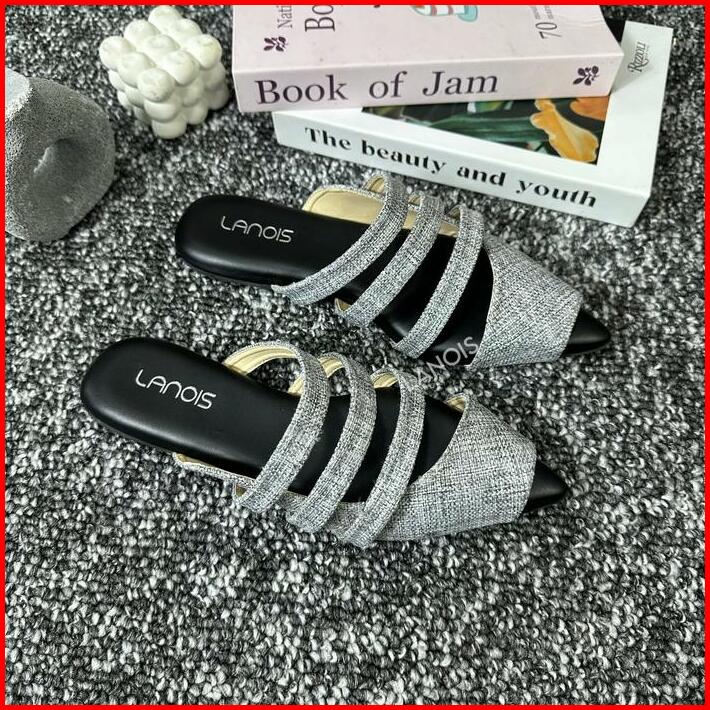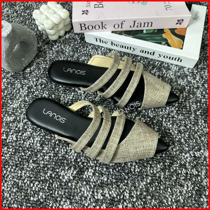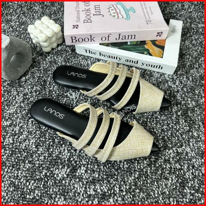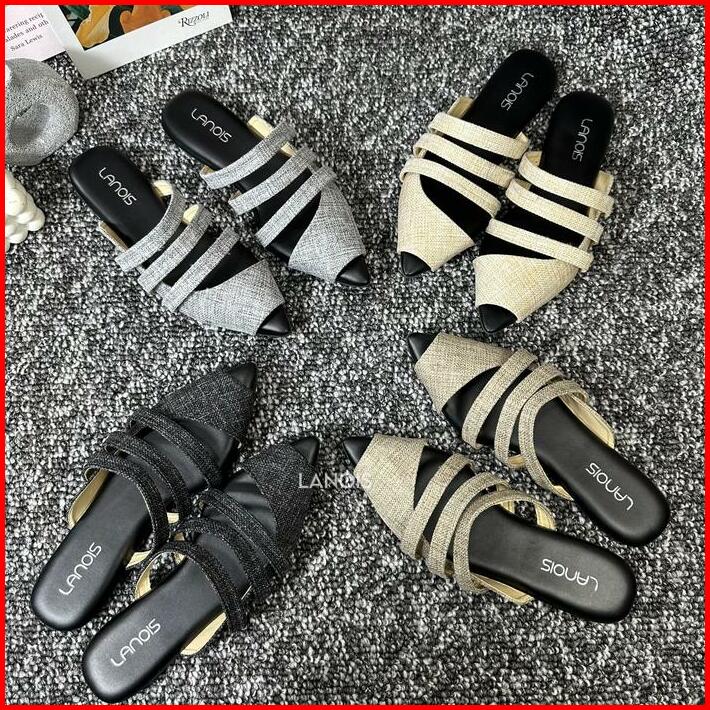 Lanois Sandal Slip On Mules Wanita Rebecca Sendal Flatshoes Wanita Selop Canvas Terbaru
