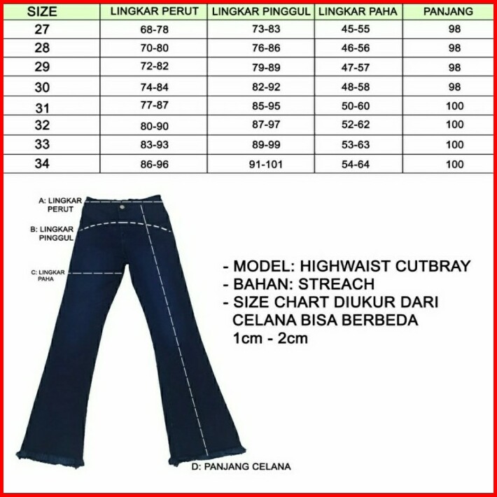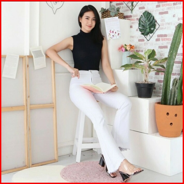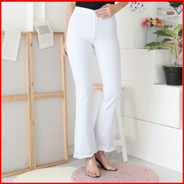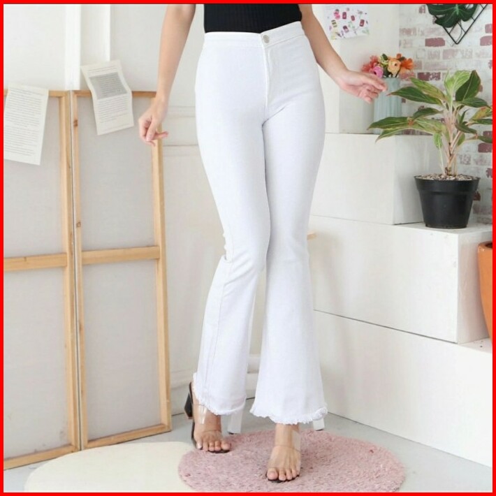 Celana Cutbray Putih Kaki Rumbai Jeans Premium Good Quality Size 27-34