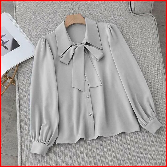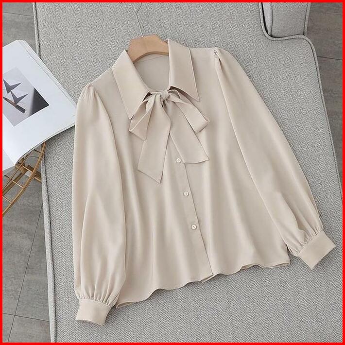 Gangnam Top Atasan Blouse Kemeja Kerja Casual Wanita Jumbo Ld 92 98 104 110 120 130 140 Korean Style Oversize Putih Keme