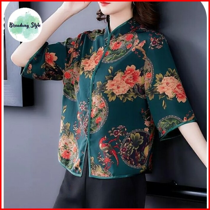 Cheongsam Red Merah Baju Atasan Wanita Blouse Lengan Panjang Imlek