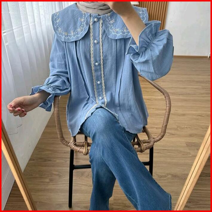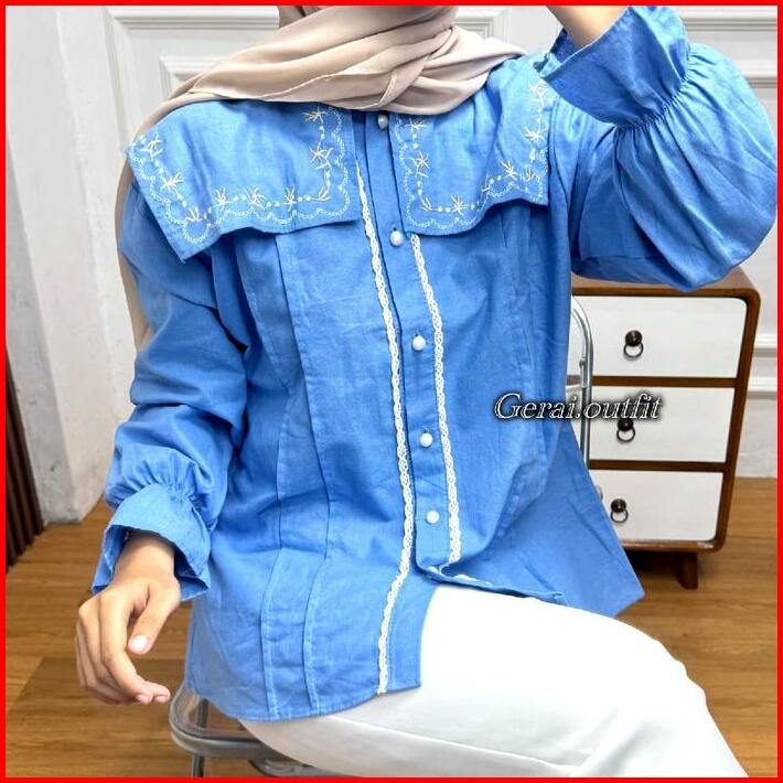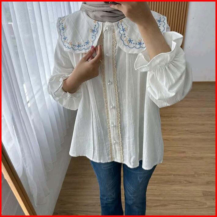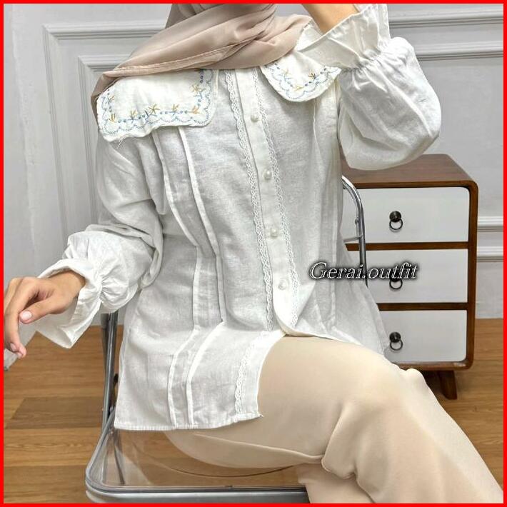 Clea Blouse Bordir Linen Atasan Wanita Kekinian