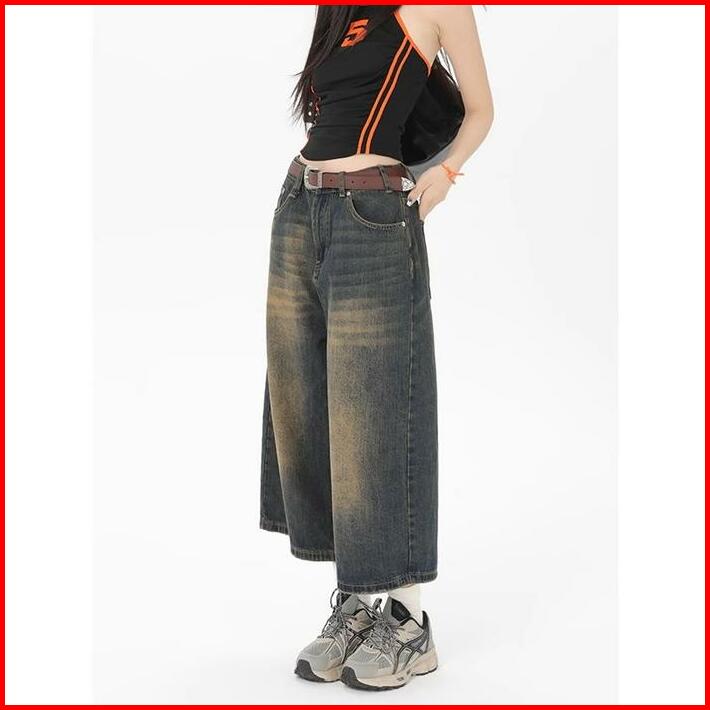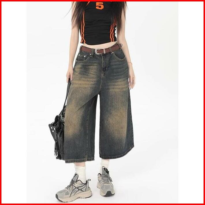 Baggy Jeans Wanita Denim Pants Korean Style Celana Pendek Cewek Highwaist Oversize S-5xl