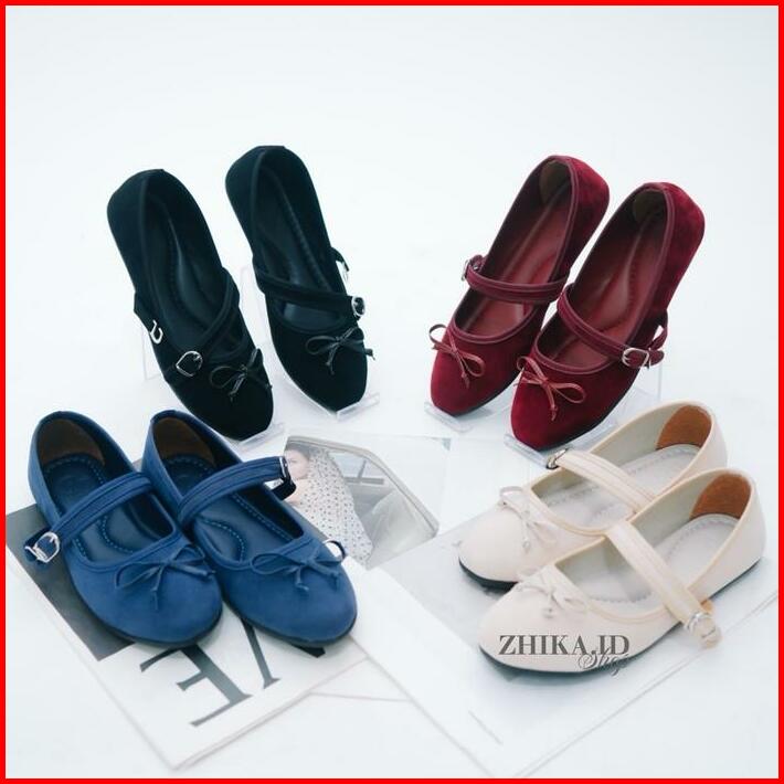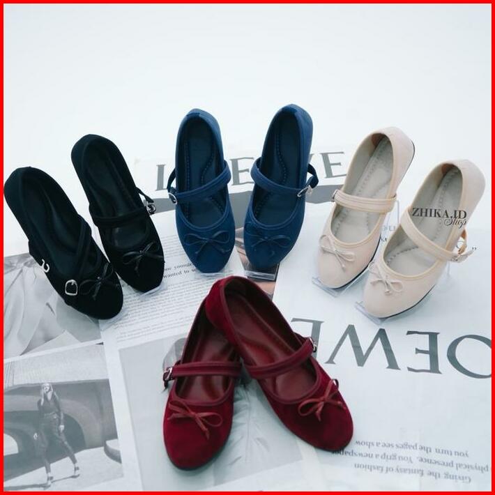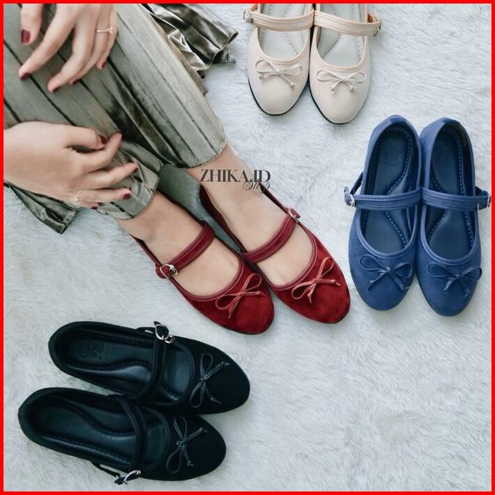 Sepatu Flatshoes Wanita Tali Pita Mary Janes Perempuan Kerja Pesta Sneakers