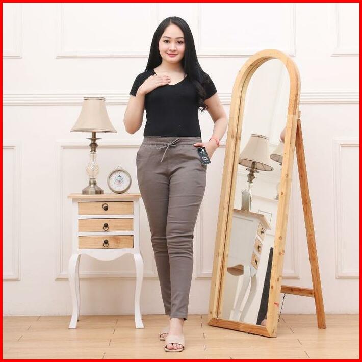 Celana Baggy Pants Polos Pinggang Karet Kain Twill Combed Diamond Premium Celana Chinos Panjang Wanita Stretch Tebal Lem