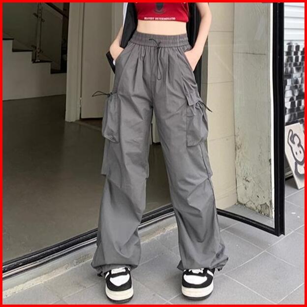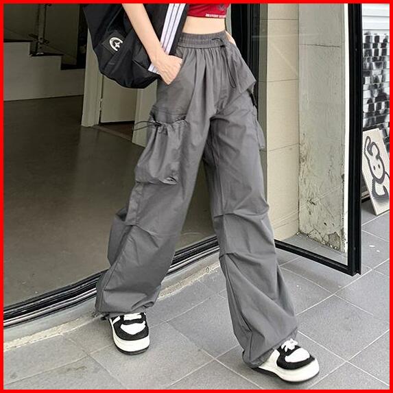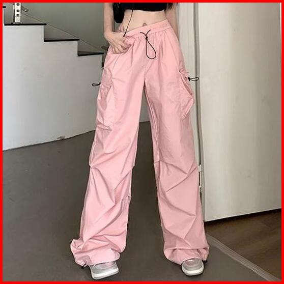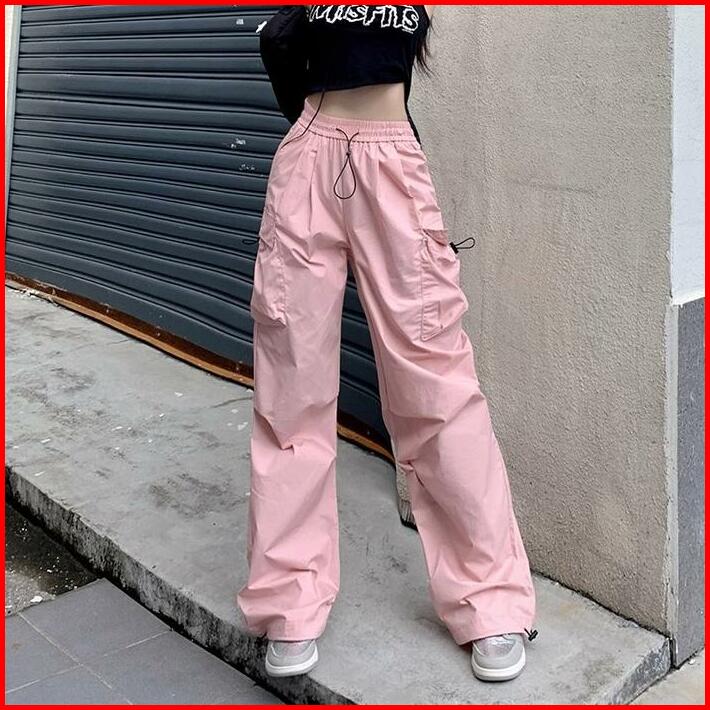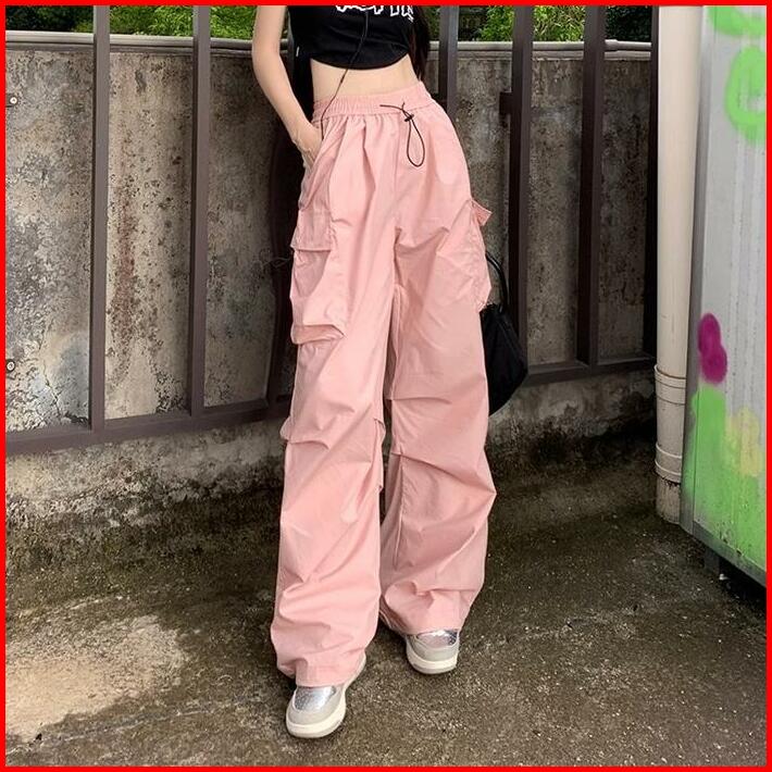 Celana Cargo Baggy Pants Kulot Highwaist Merah Muda Korean Style Wanita