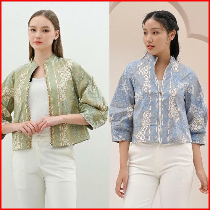 Evercloth Fiza Jaket Batik Bomber Outer Batik Modern Luaran Vest Blazer Batik Couple Modern Atasan Blouse Tangan Balon B