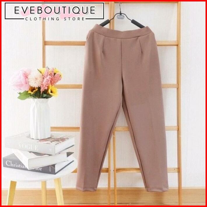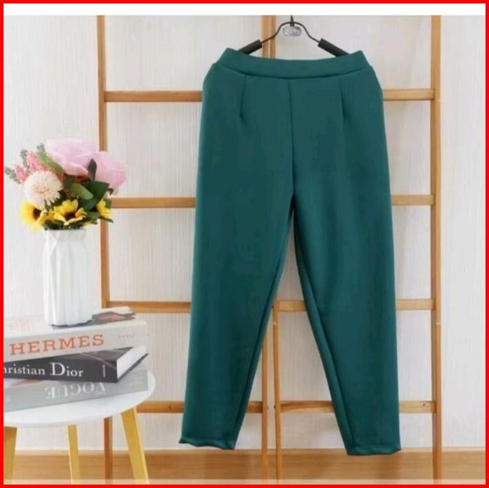 Baggy Pants Harem Baggy Pants Big Size Tebal Halus Celana Panjang Wanita Casual Fit Kantong Karet Minimalist Elastic Wai