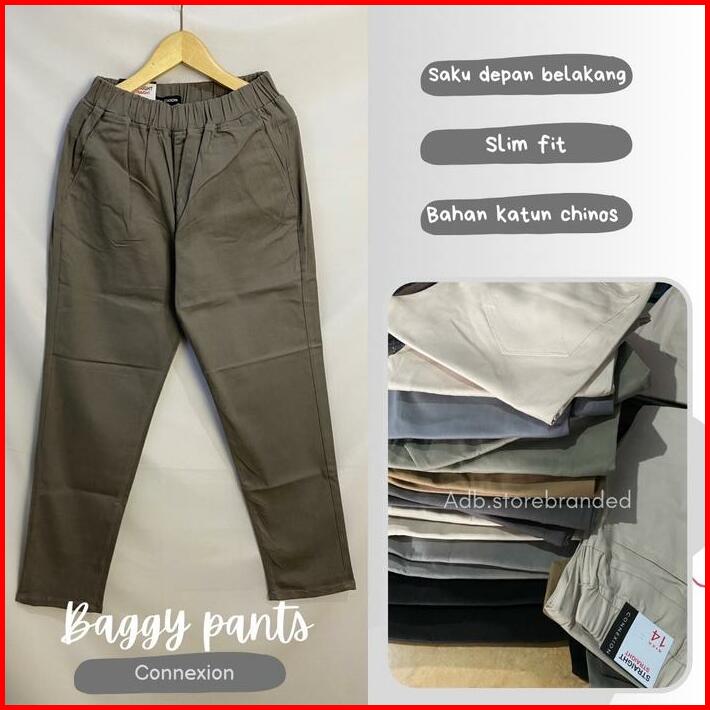 Celana Panjang Baggy Pants Wanita Connexion Kain Katun Polos Cewek Slim Fit Celana Casual Chinos