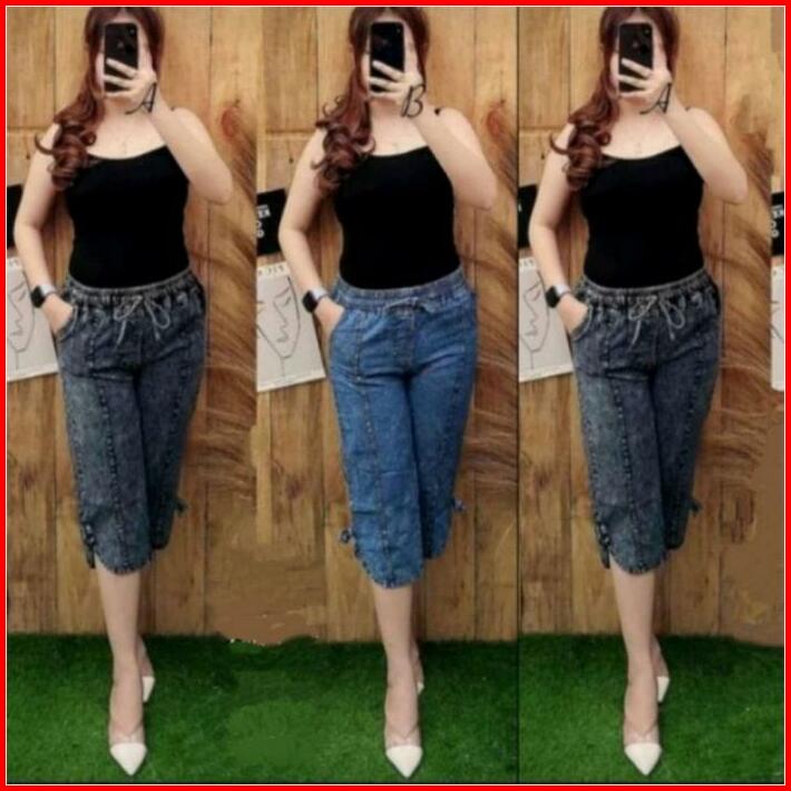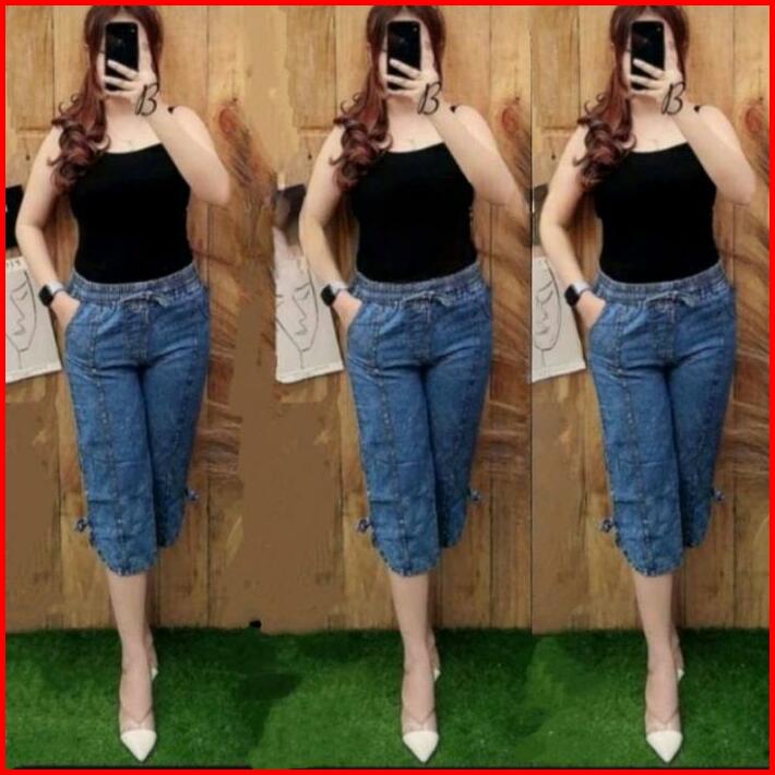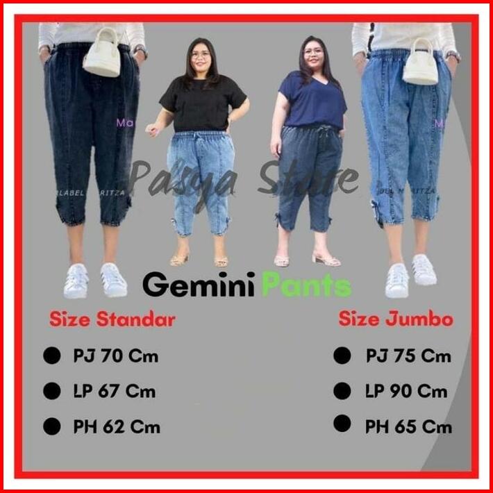 Celana Jeans Gemini Pants Wanita 7 8 Baggy Kantong Pinggang Karet
