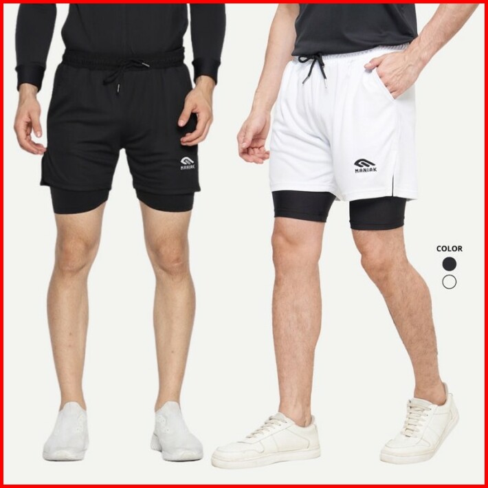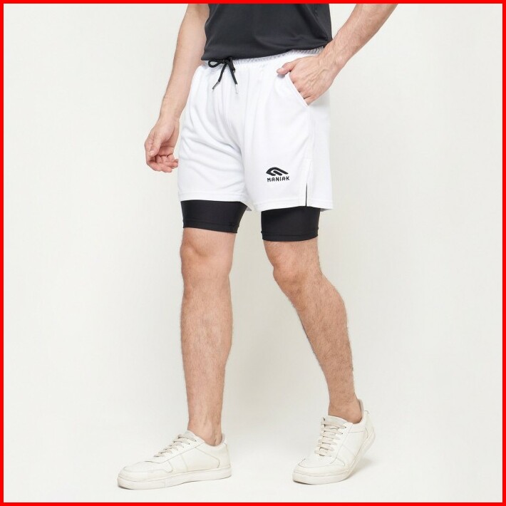 Maniak Celana Pendek 2 In 1 Olahraga Pria Wanita Running Gym Lari