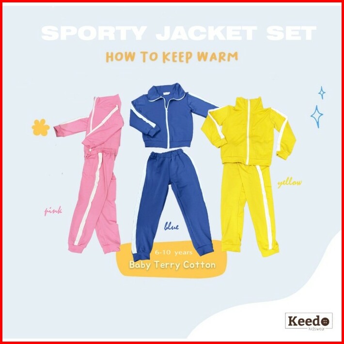 Keedo Sporty Jacket Set Setelan Baju Olahraga Jaket Anak 6-10 Tahun