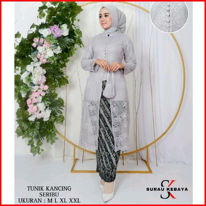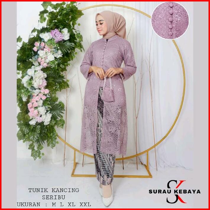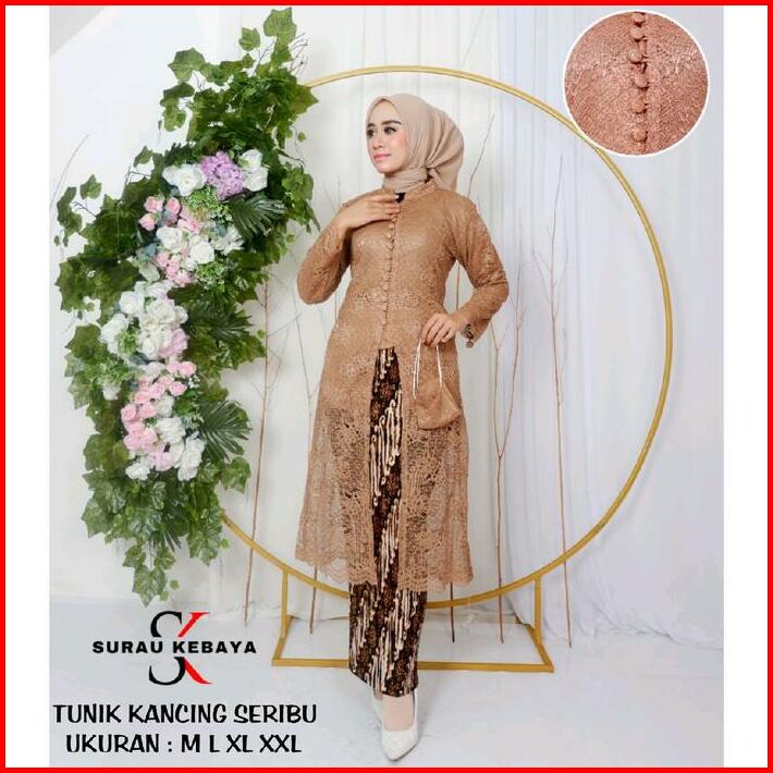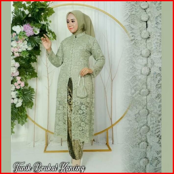 Setelan Kebaya Modern Dan Mewah Terbaru 2025 Brokat Kondangan Tunik Panjang Hijab Kancing Bisa Seragam Cocok Untuk Ibu H