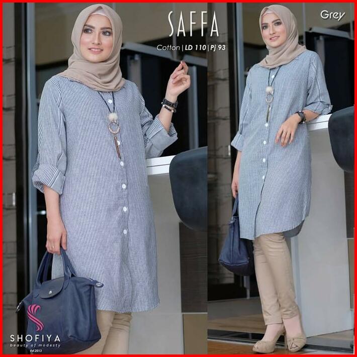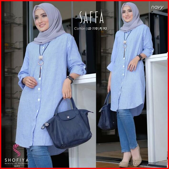 Baju Kerja Wanita Terbaru 2025 Saffa Tunik Katun Salur Jepang Fit Kancing