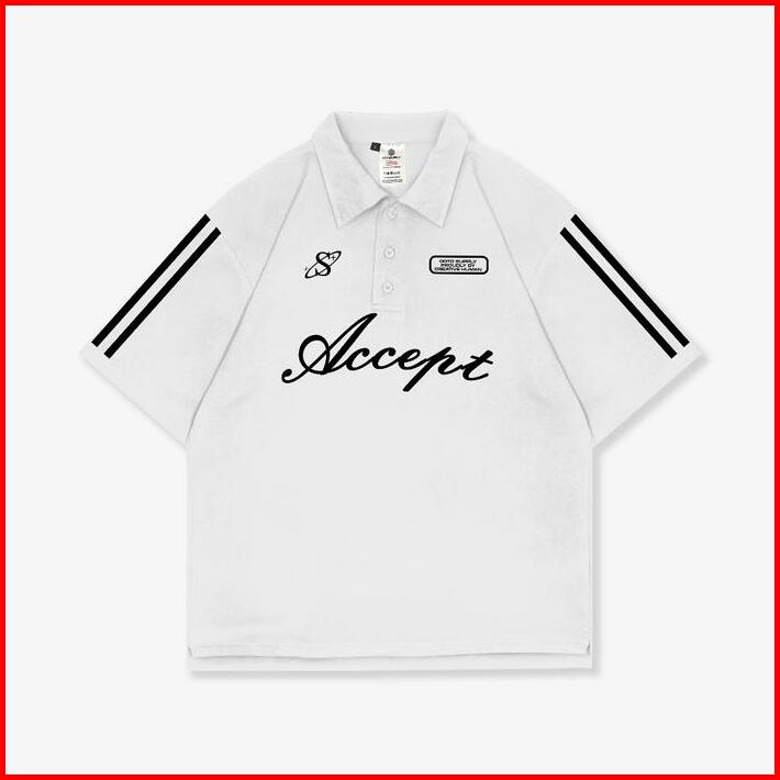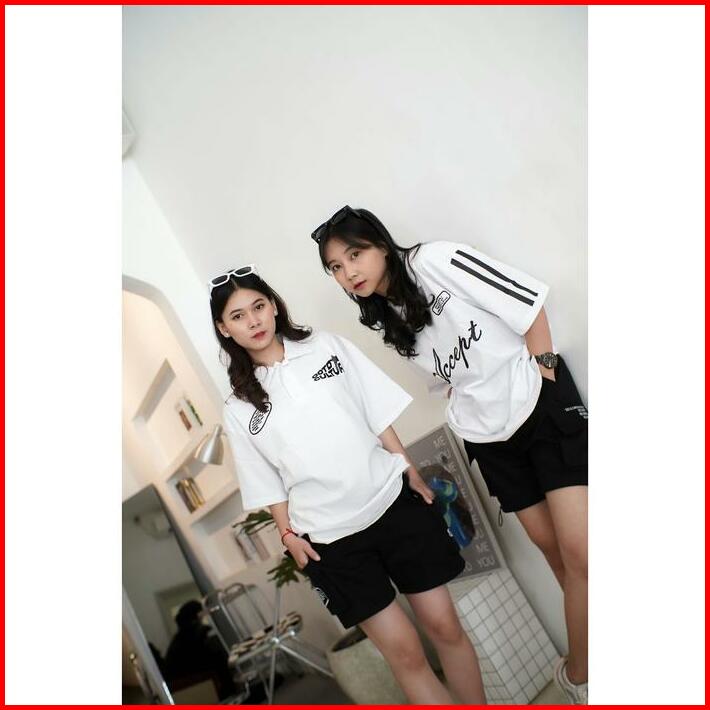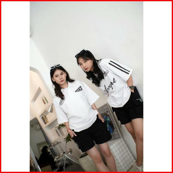 Ootdsupply Oversize Polo Shirt Accept Line White Black L Kaos Oversize Pria Dan Wanita Ovz-ps003