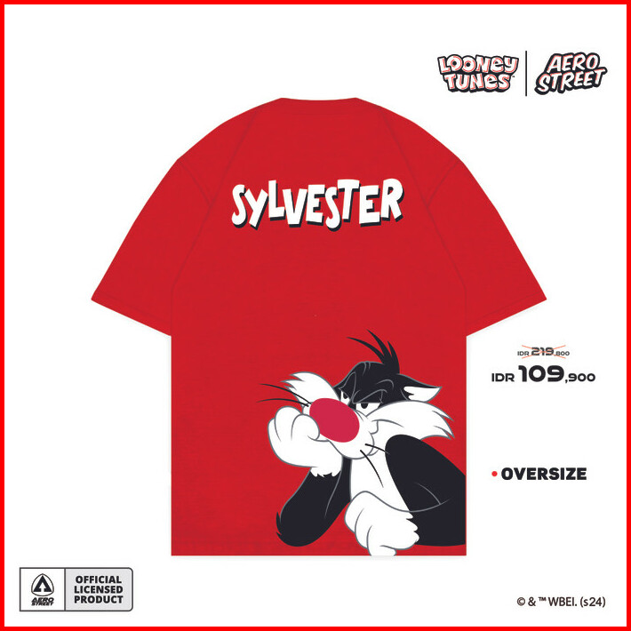 Aerostreet T Shirt Oversize Sylvester Merah Kaos T-shirt Tshirt Fbdaa