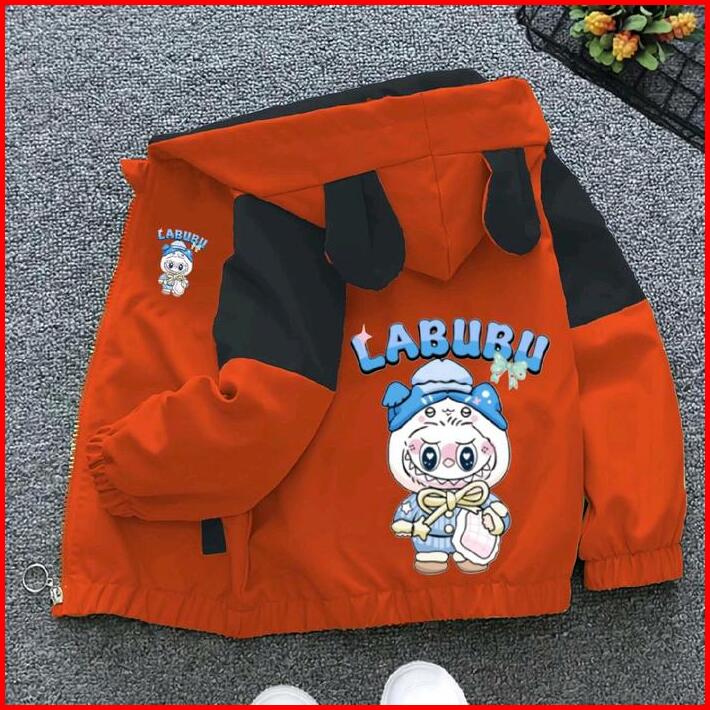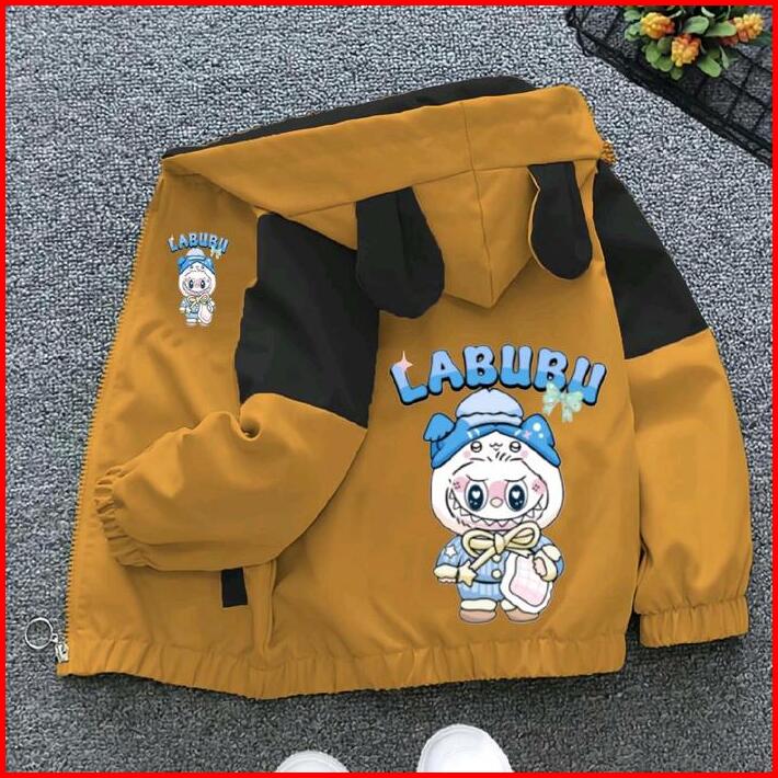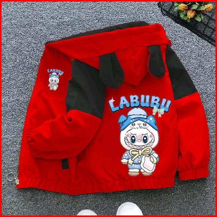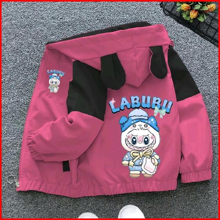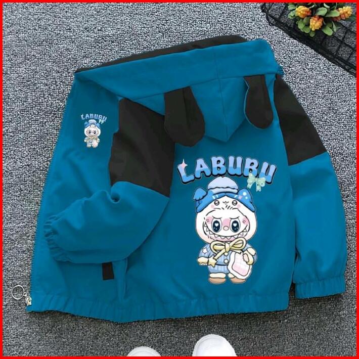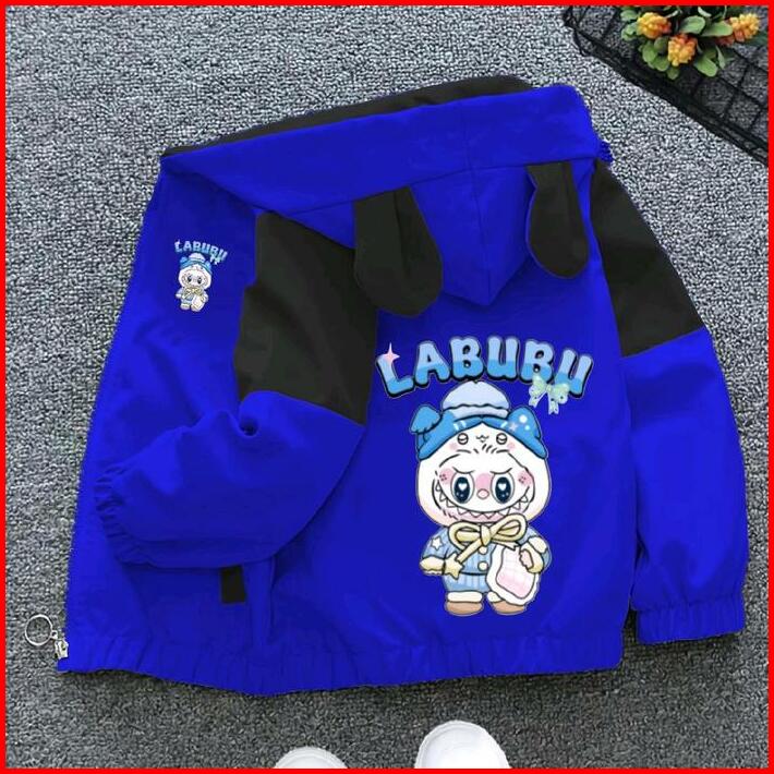 Jaket Anak Kombinasi Waterproop Gambar The Labubu Blue Fashion Korean Jaket Anak Laki Laki Dan Perempuan Jaket Labubu An