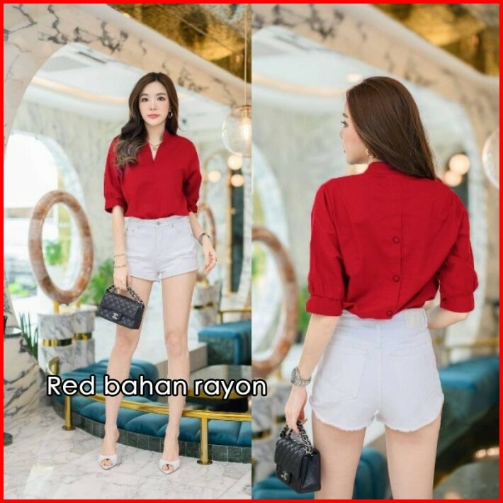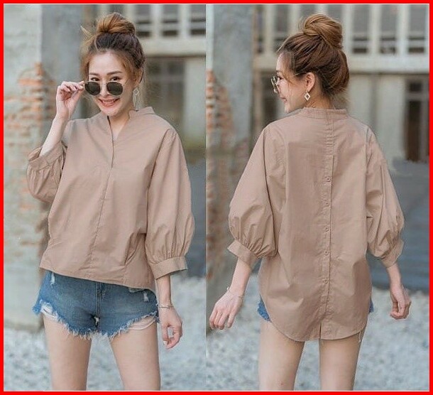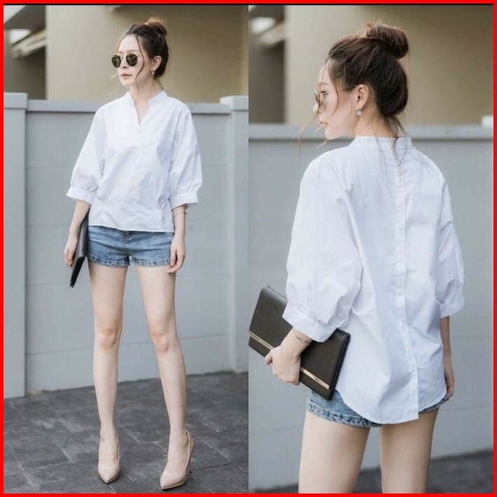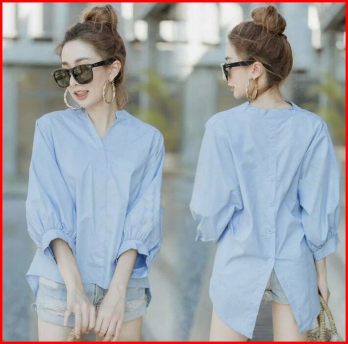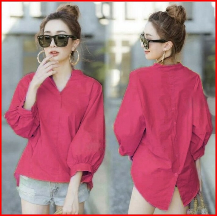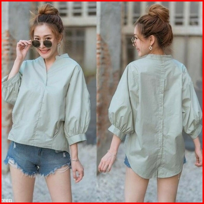 Kemeja Blouse Wanita Korean Model Pinguin Polos Berkacing-1417 Polos