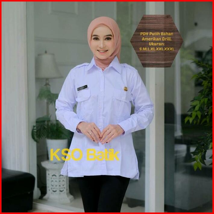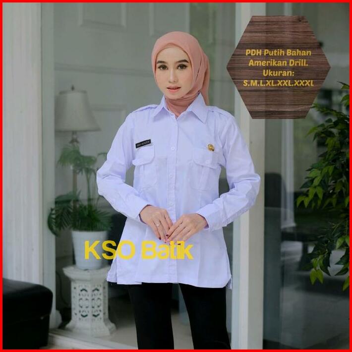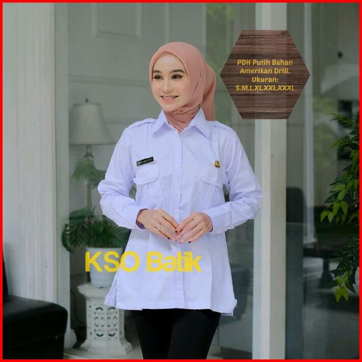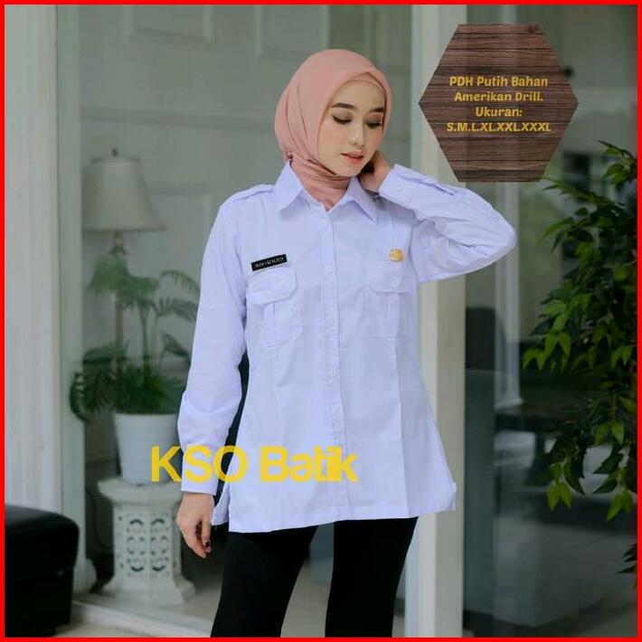 Blouse Pdh Putih Wanita Kerah V Nack Lengan Panjang Seragam Guru Blus Pppk Baju Wanita Asn Putih Ready Ukuran S M L Xl X