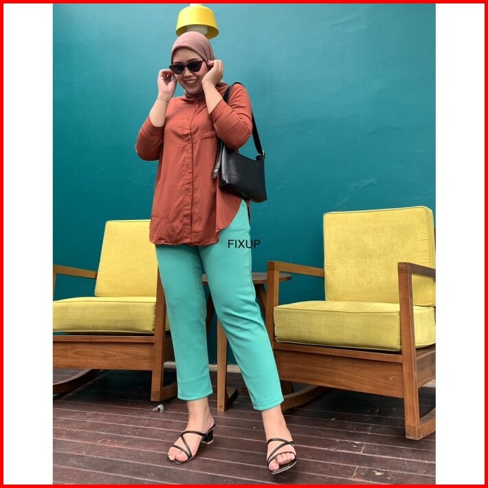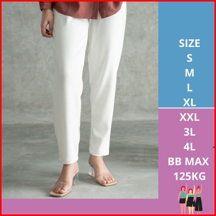 Celana Panjang Wanita Scuba Pants Pensil Murah Putih Baggy