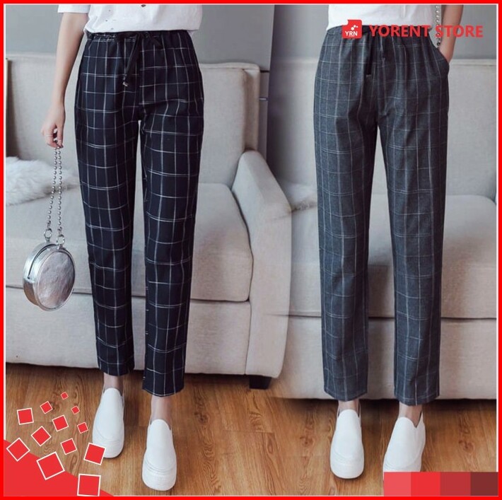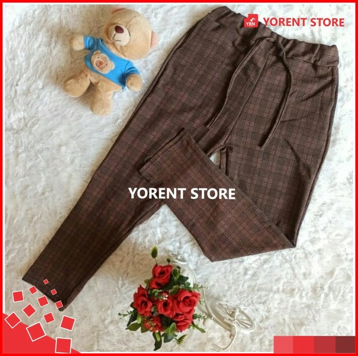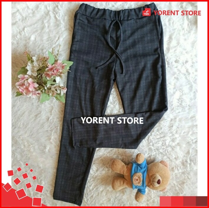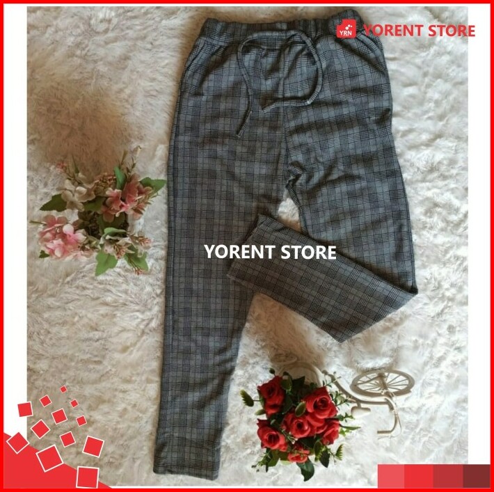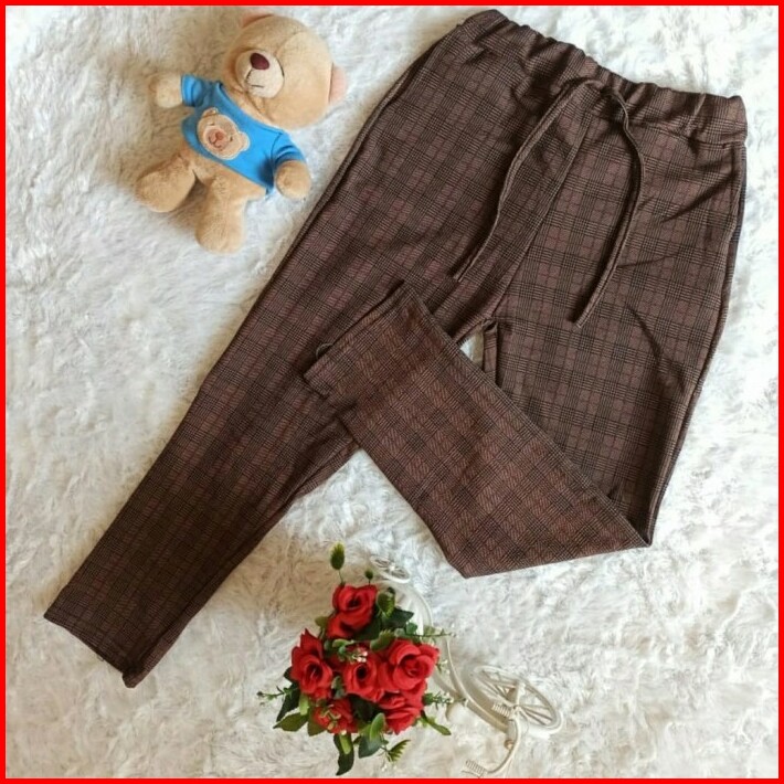 Celana Baggy Tartan Bagy Doty Pants Wanita Motif Kotak Fit L Panjang