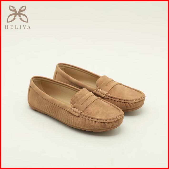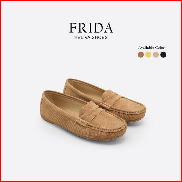 Frida Sepatu Loafer Flatshoes Sol 1cm Wanita Warna Apricot Brown Black Yellow Ukuran 36 37 38 39 40 41 Motif Polos H765
