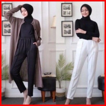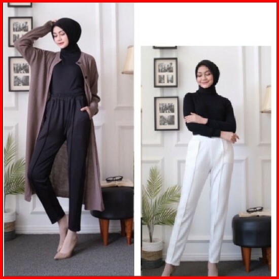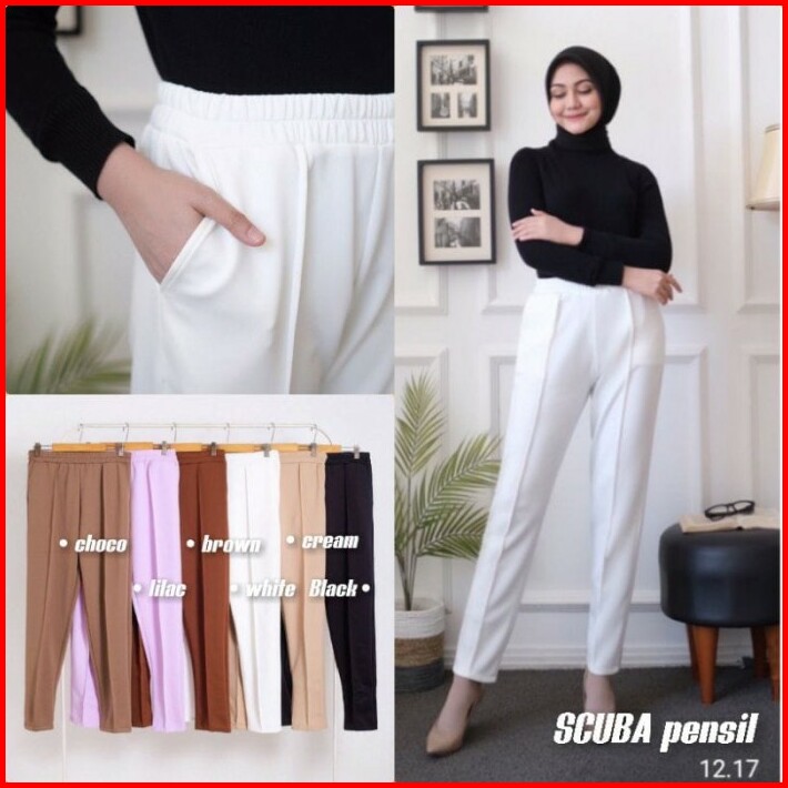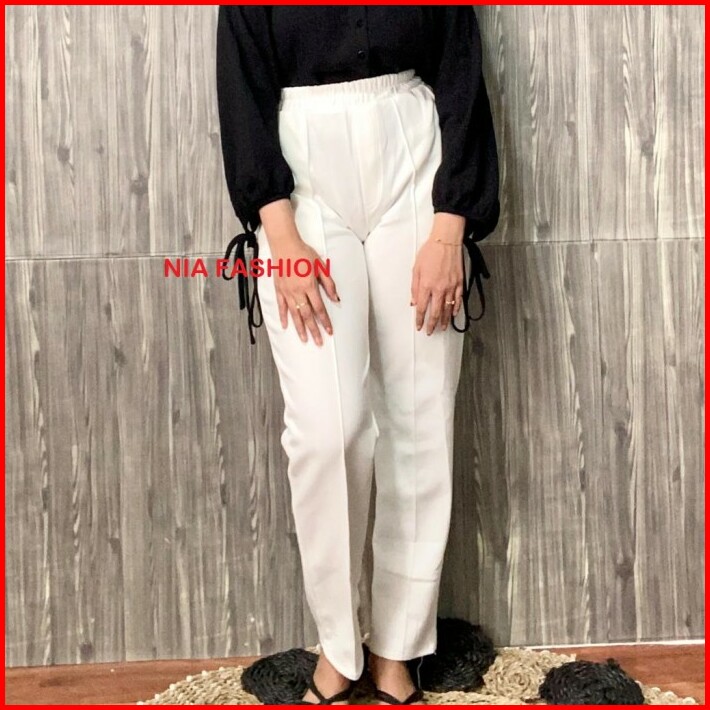 Celana Baggy Pants Scuba Celana Pinggang Kerut Celana Panjang Scuba