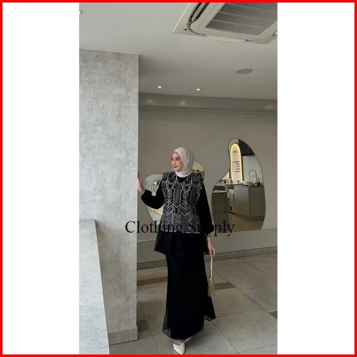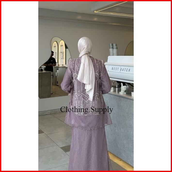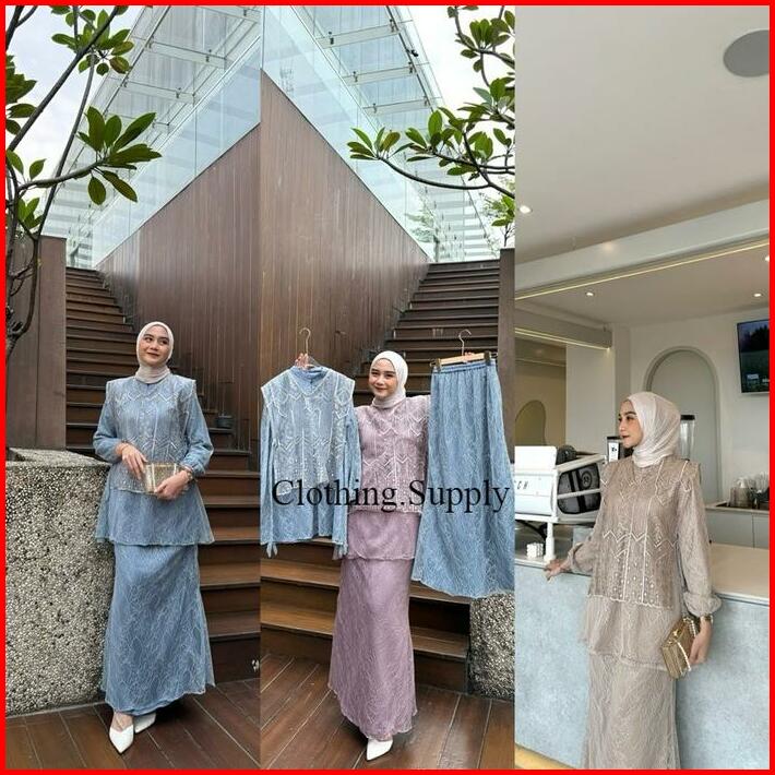 Felisya Set 3in1 Blouse Vest Skirt Busui Friendly One Set Dress Baju Kondangan Pesta Brukat Wanita Terbaru Muslim Gamis
