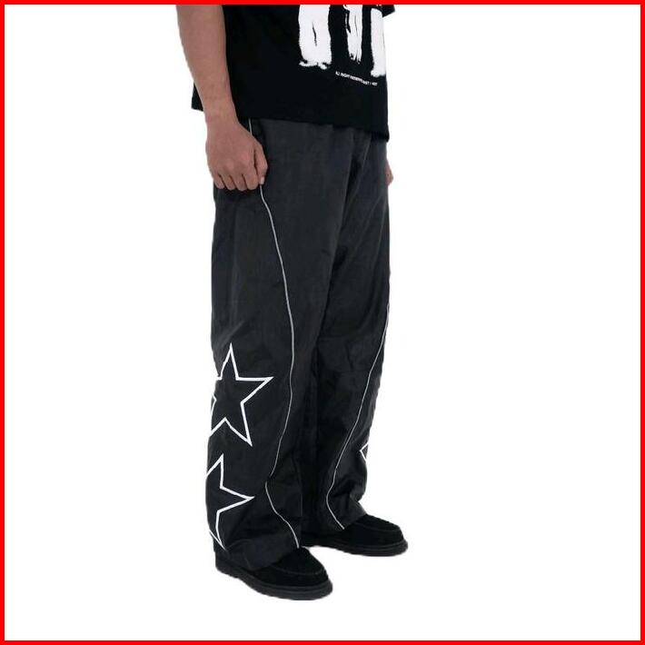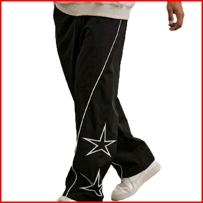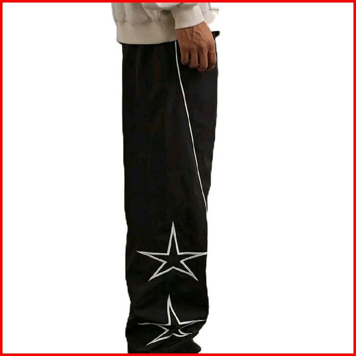 Unbroken Parachute Baggy Casual Pants Dtf Black Stars Celana Panjang Unsex Regular Skena Loose Karet Stretch