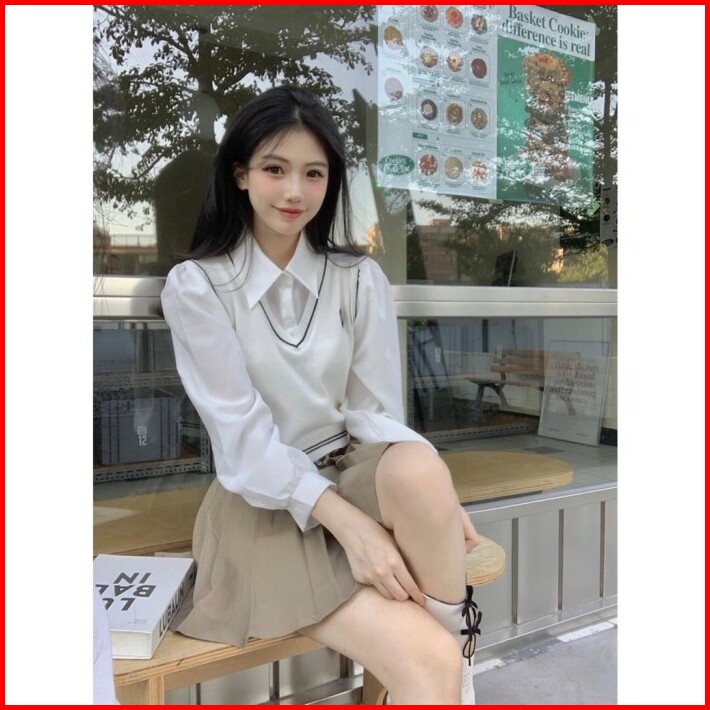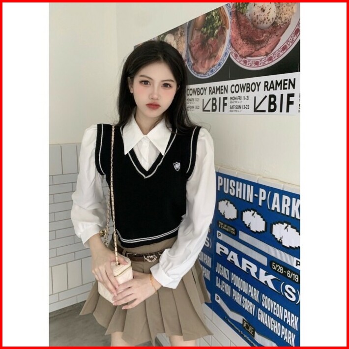 Noonie Blouse Vest Wanita Rompi Korea Sekolah School Korean Atasan