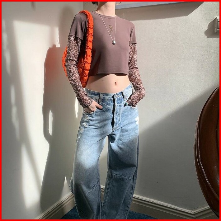 Baggy Ripped Jeans Pants Celana Baggy Denim Barrel Denim Pants