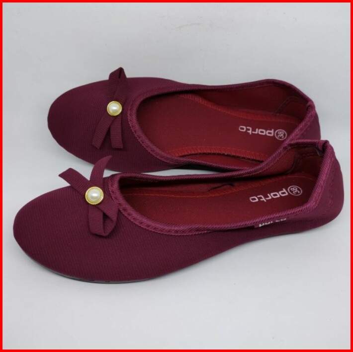Sepatu Flatshoes Wanita S36-40 Pita Merek Porto Bahan Kain Empuk