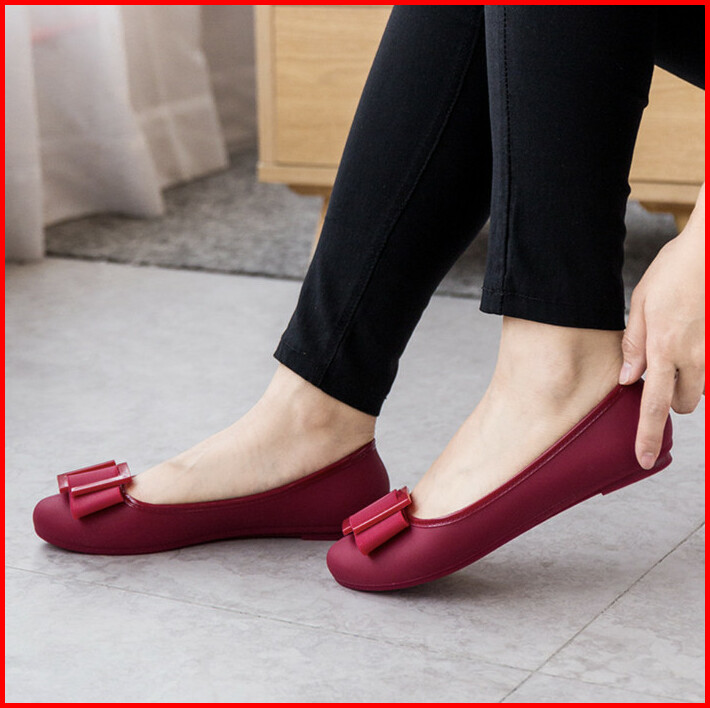 Premier Flatshoes Wanita Jelly Trapesium Ujung Bulat Slip-on Import
