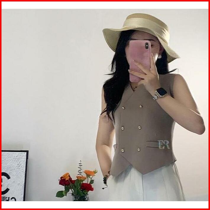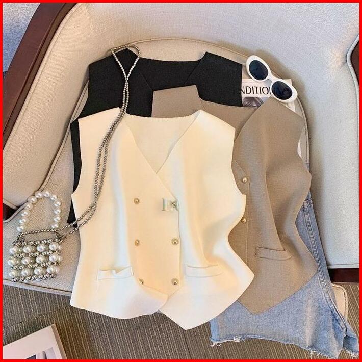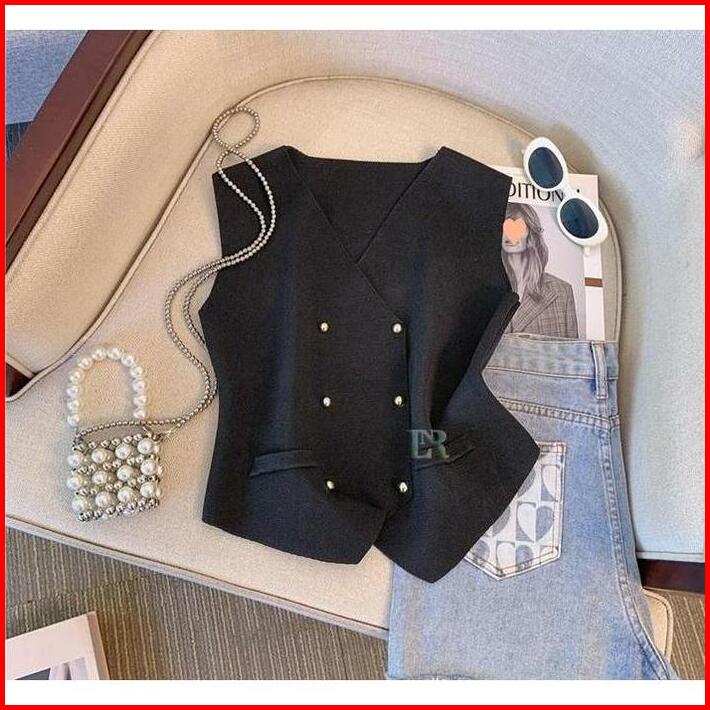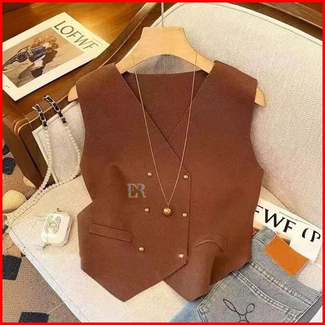 Lnr Shop Atasan Vest Rompi Rajut Full Kancing Bahan Halus Lembut Untuk Perempuan Tanpa Lengan Basic Elegant Kaos Blouse