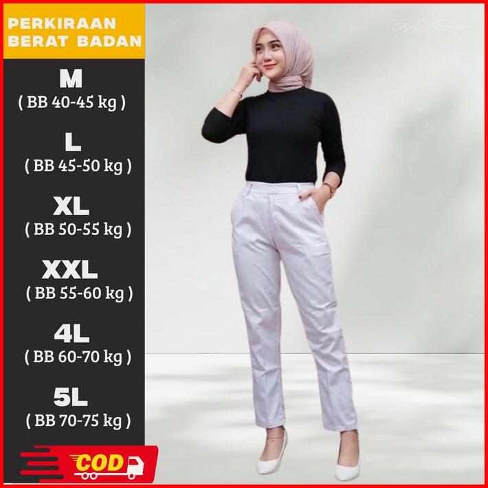 Celana Kerja Wanita Putih Celana Panjang Perawat Kain Premium Formal Casual Katun Kancing Karet Nyaman Tebal Baggy Pants
