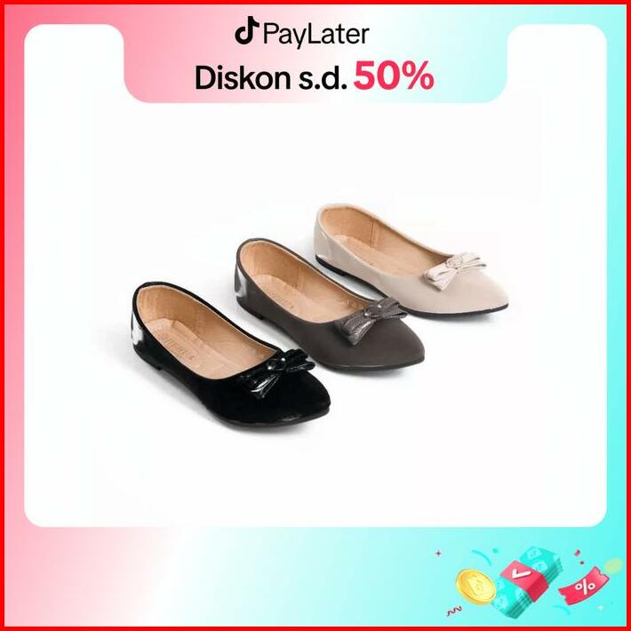Jiehua Giselle Flatshoes Wanita Anti Slip Model Terbaru Kerja Kuliah Harian D-1736