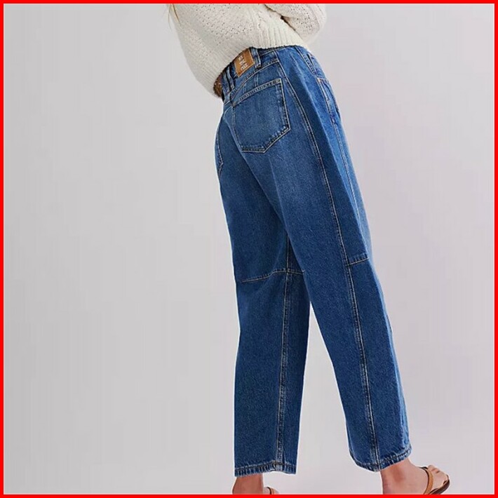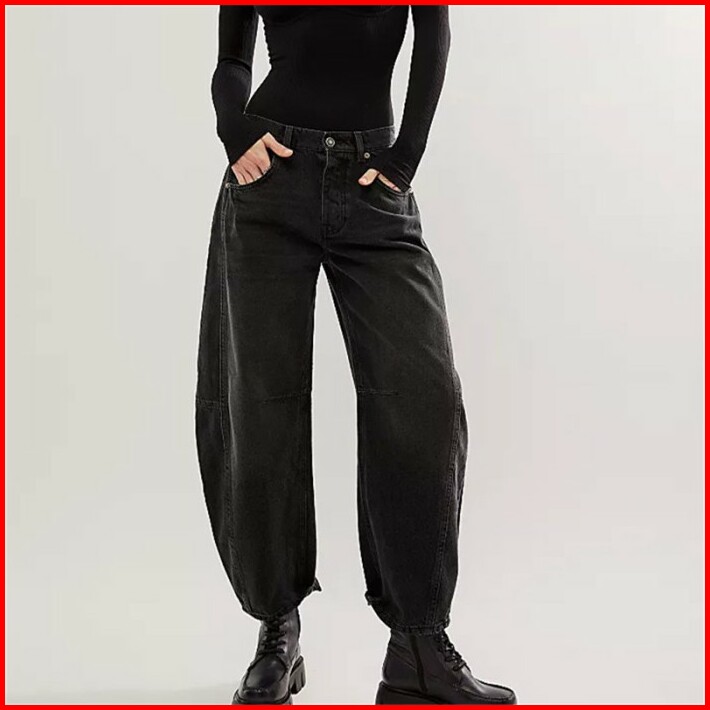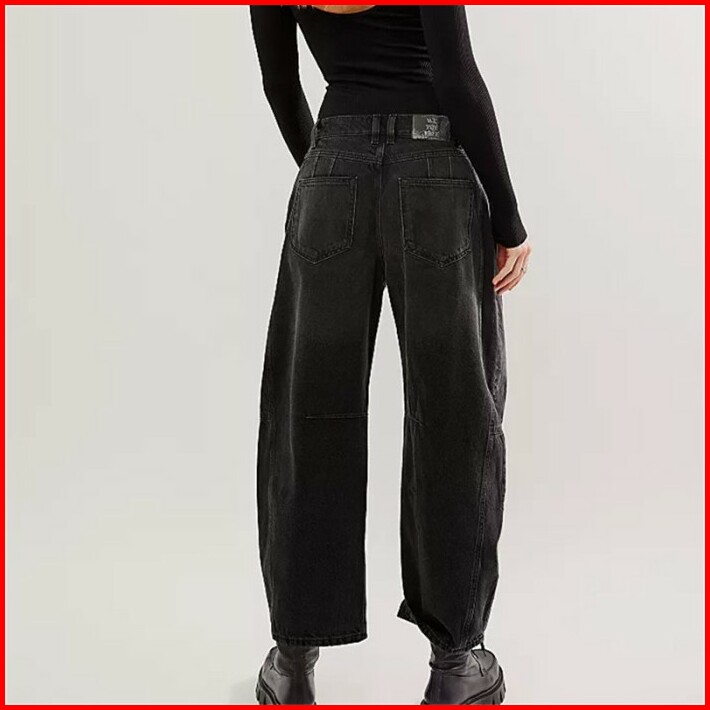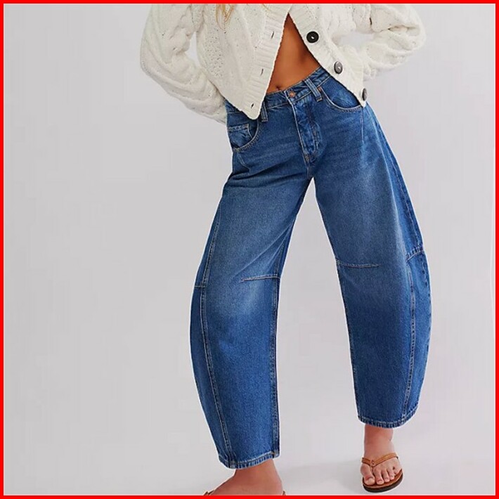 Barrel Jeans Women Casual Baggy Wide Leg Horseshoe Denim Pants Y2k Boyfriend Vintage Tapered Jeans Mid Rise Cropped Barr