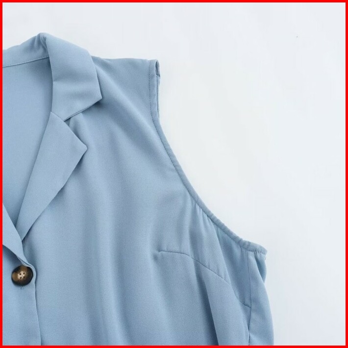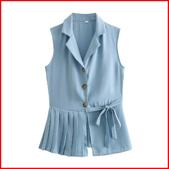 74830 Blue Informal Basic Casual Commuter Style Vest Blouse Vest Blouse Wanita