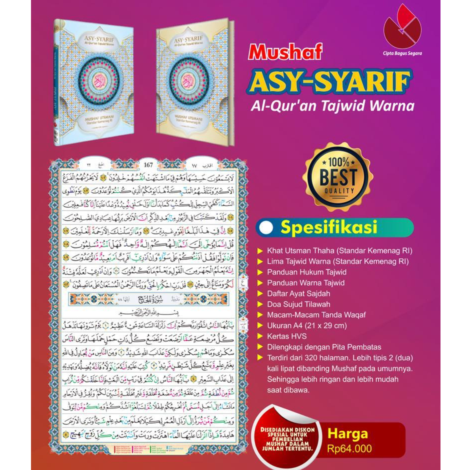Al Quran Besar HC Tajwid Warna ASY SYARIF Mushaf Utsmani Ukuran A4 Alquran Non Terjemah HARDCOVER