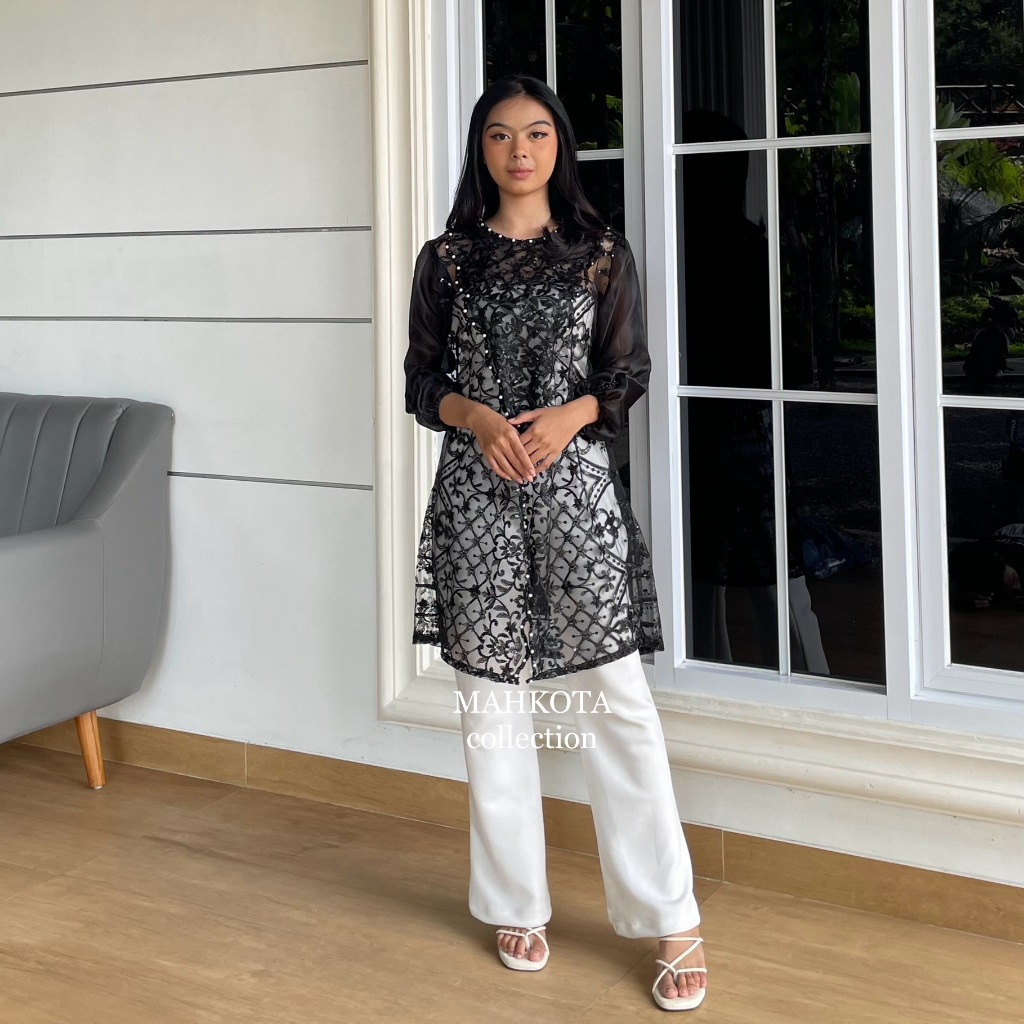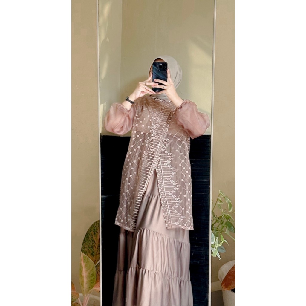 Fiona Tunik Outer Silang Brukat Etnik Full Payet Outer Brukat Kondangan / Tunik Lebaran Baju Hari Raya / Outer Brukat Or