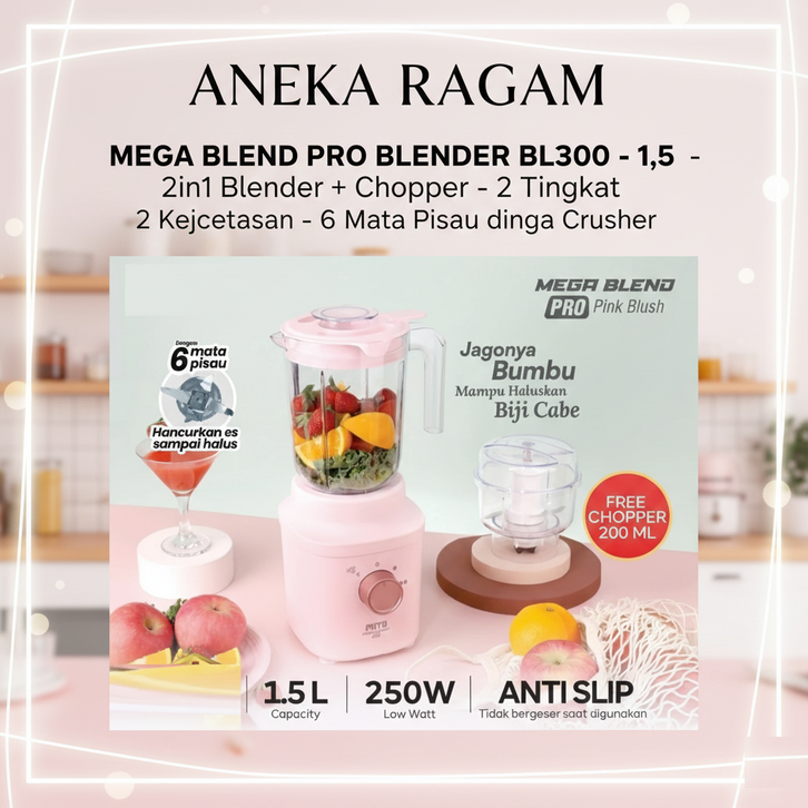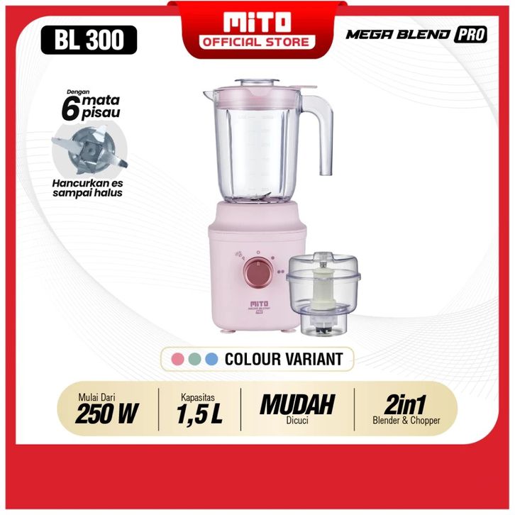 MITO MEGA BLEND PRO BL300 - 1,5L Jar 2 Tingkat Kecepatan + Pulse + 6 Mata Pisau dengan Ice Crusher