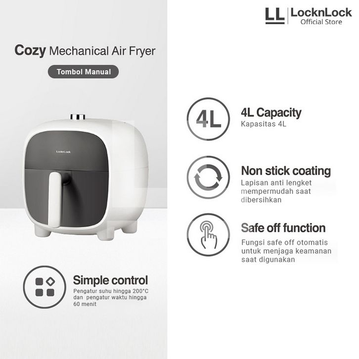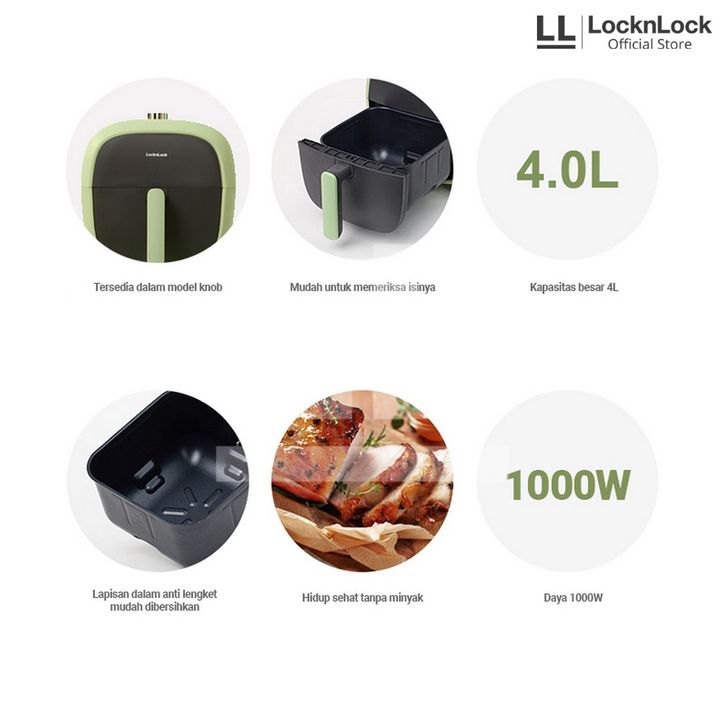 Air Fryer Low Watt LocknLock Cozy Air Fryer 4L - EJF183 Air Fryer Low Watt Best Seller