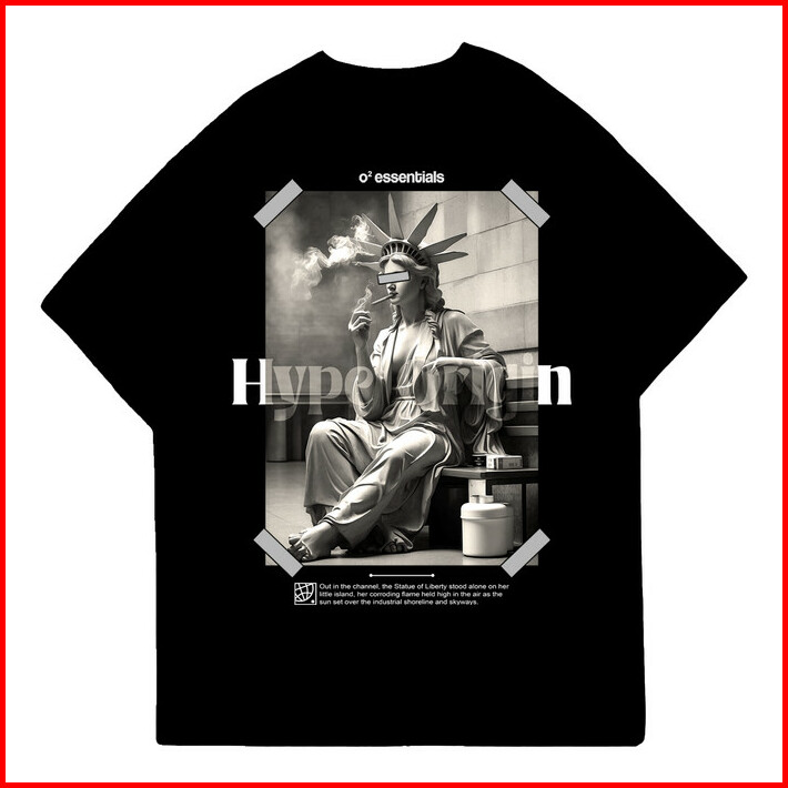 O2 Essentials Kaos Oversize Hitam Premium Pria Dan Wanita