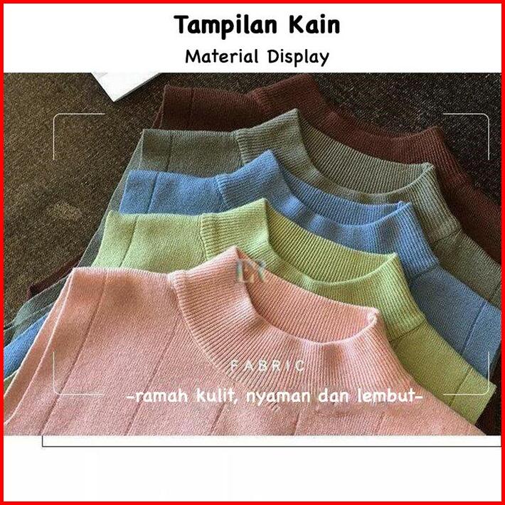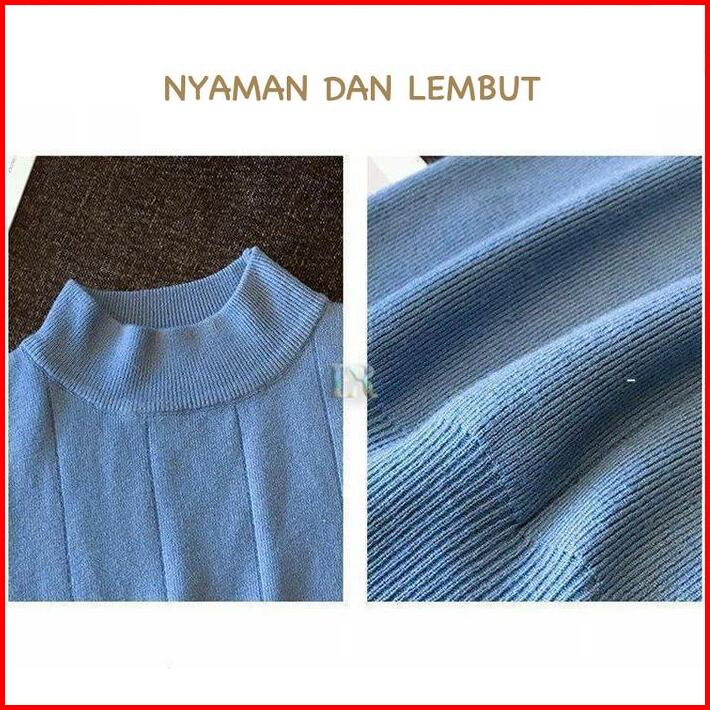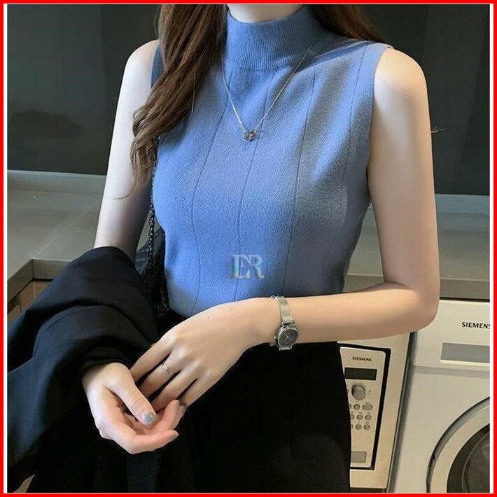 Lnr Shop Lokal Premium Atasan Wanita Tanpa Lengan Casual Fashion Korea Bahan Rajut Turtleneck T-shirt Blouse Kerah Seten
