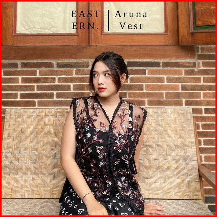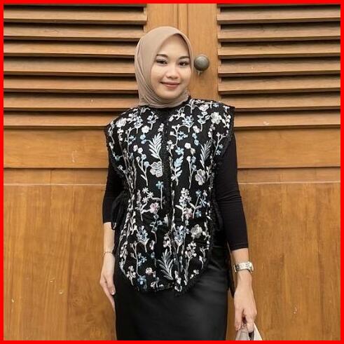 Free Bros Vest Brukat Aruna Outer Tile Garden Kekinian Kemeja Satin Blouse Kimono Mewah Nyaman Lembut Twill Weave Modest