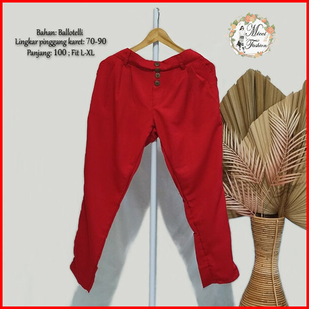 Celana Panjang Wanita Baggy Pants Merah Variasi Kancing Batok Kelapa