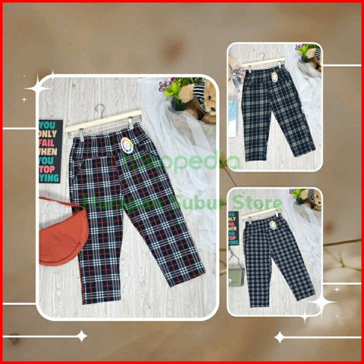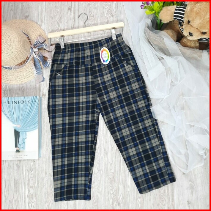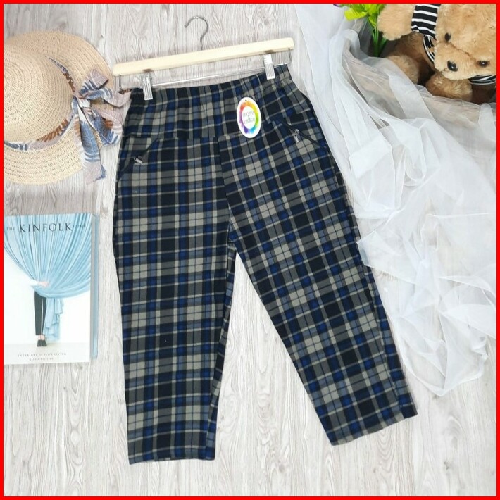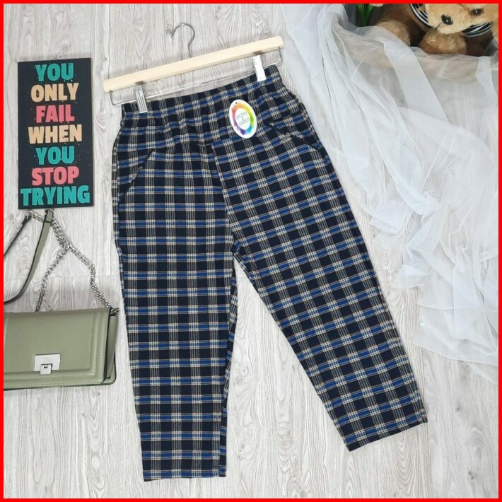 Celana Panjang 7 8 Wanita Kotak Baggy Pants Import Korean Style